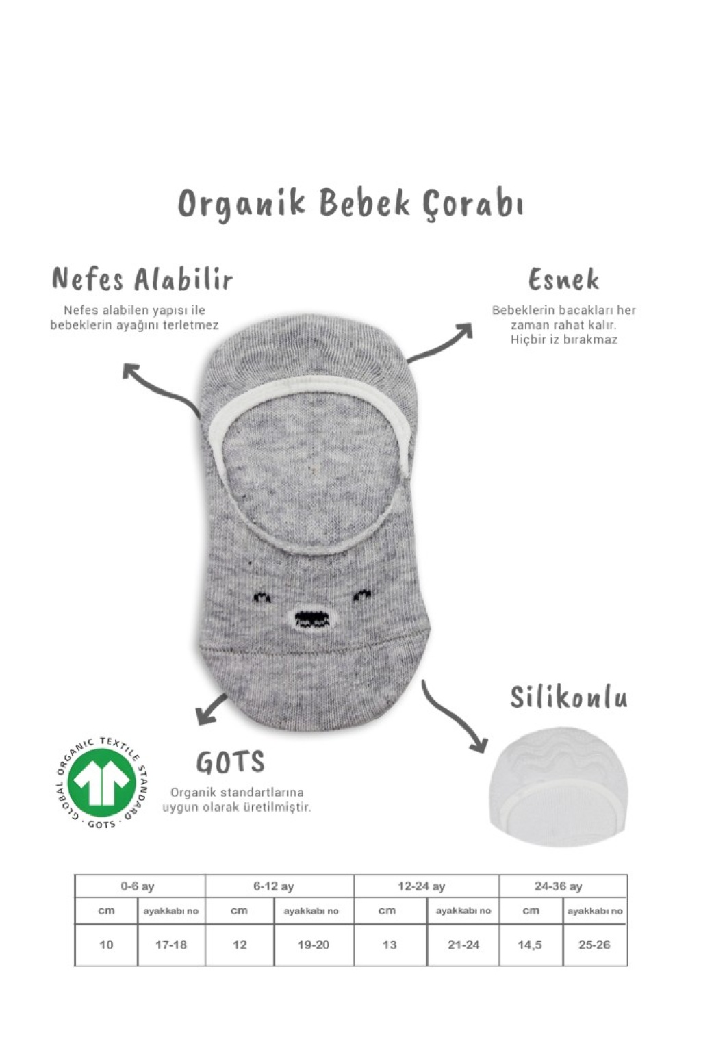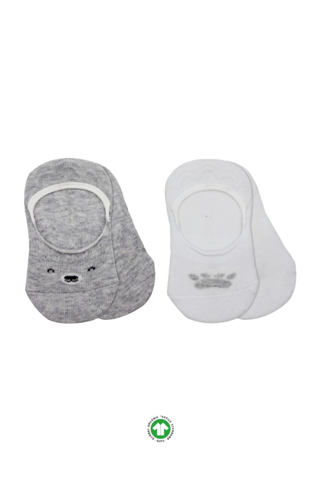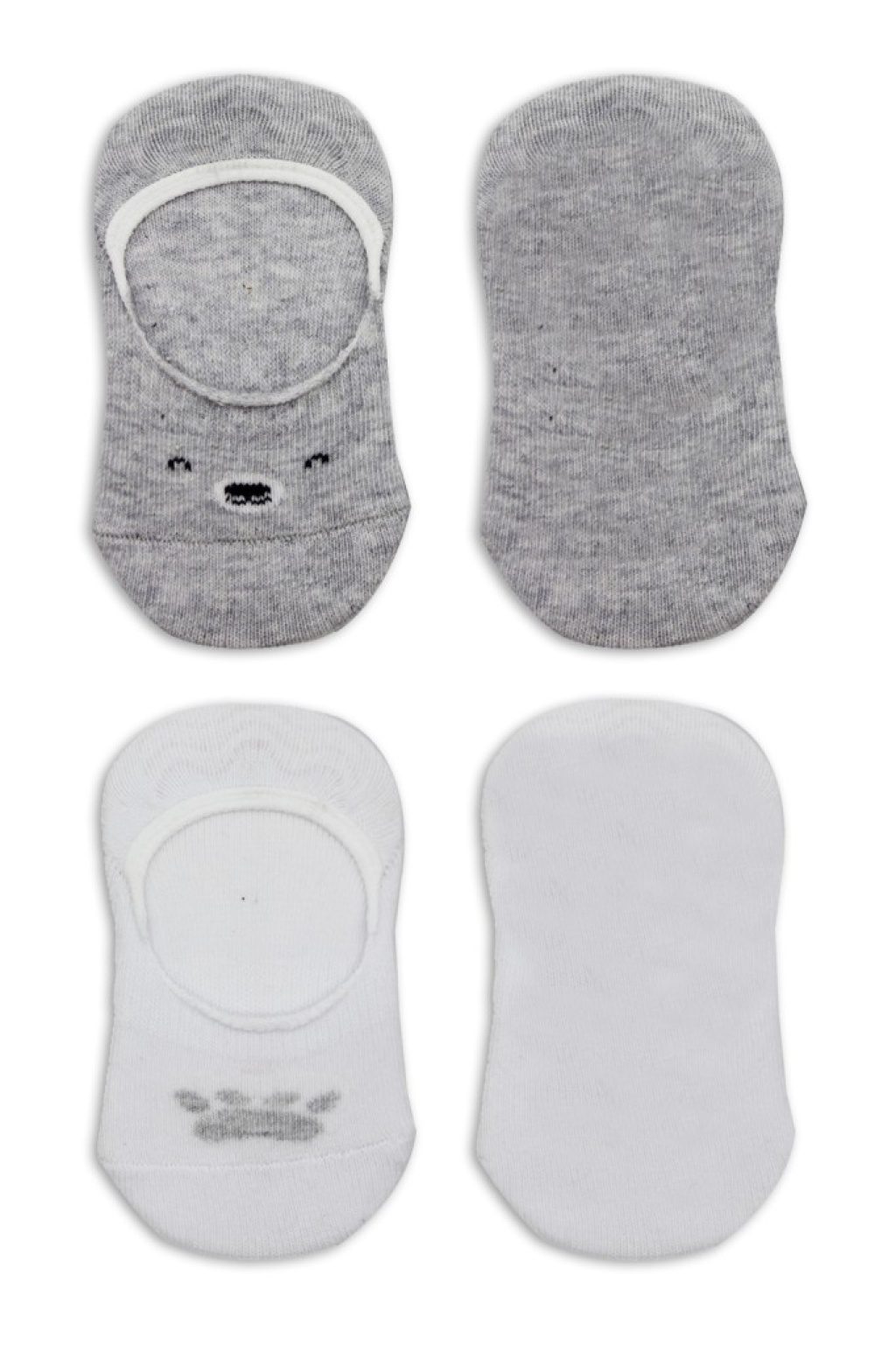 2'Li Babet Cute Face Penye Çorap 30103 Gri Beyaz