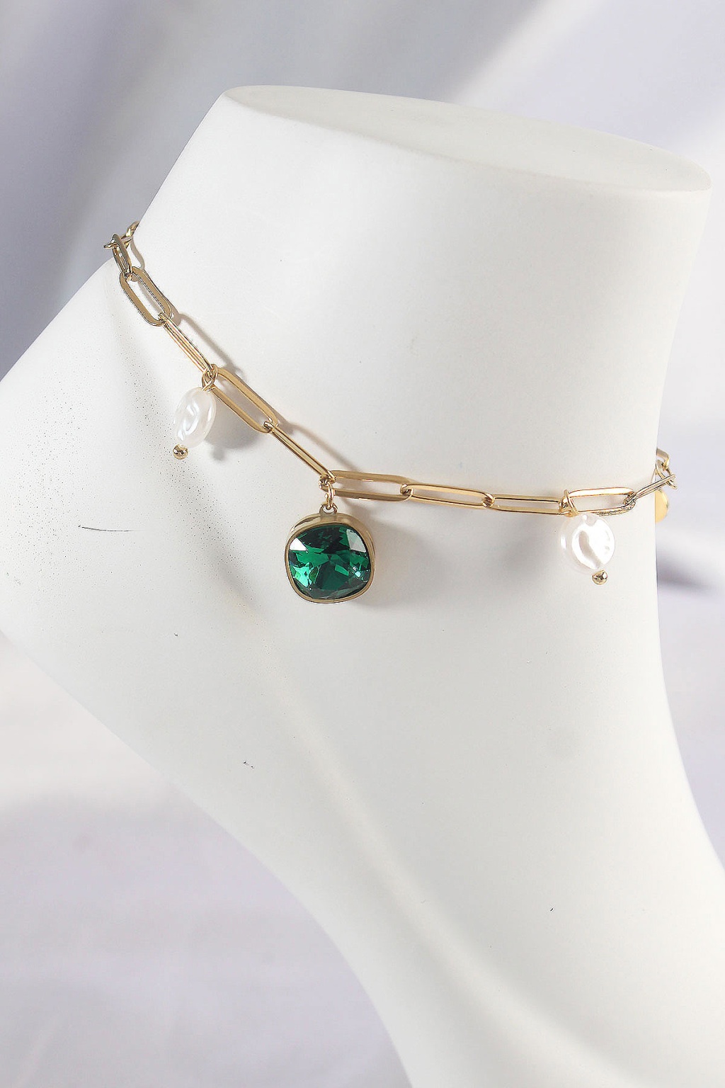 316L Çelik Gold Renk Zümrüt Taş Tasarımlı Halhal