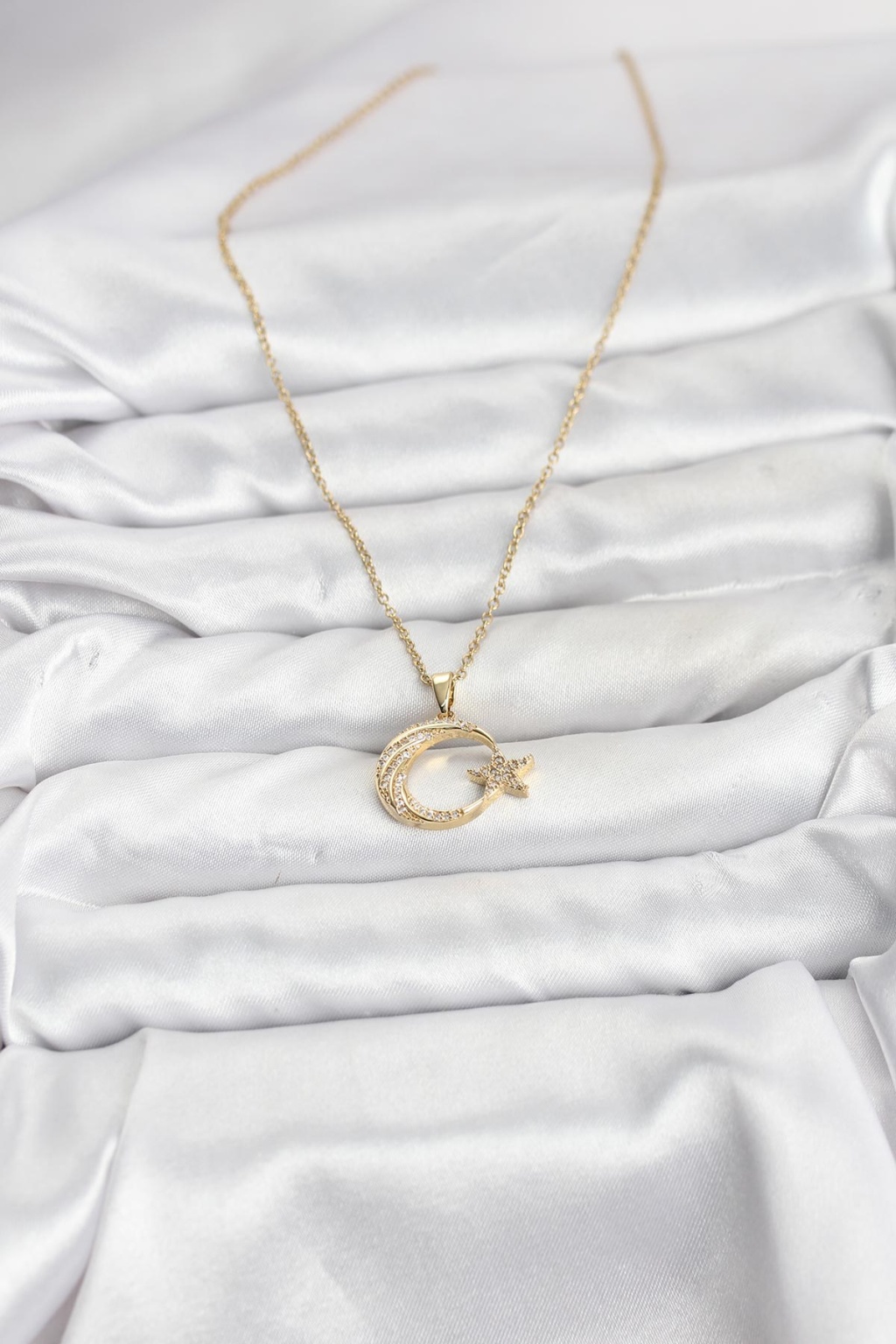 316L Çelik Zincir Gold Renk Ay Yıldız Model Zirkon Taşlı Kadın Kolye