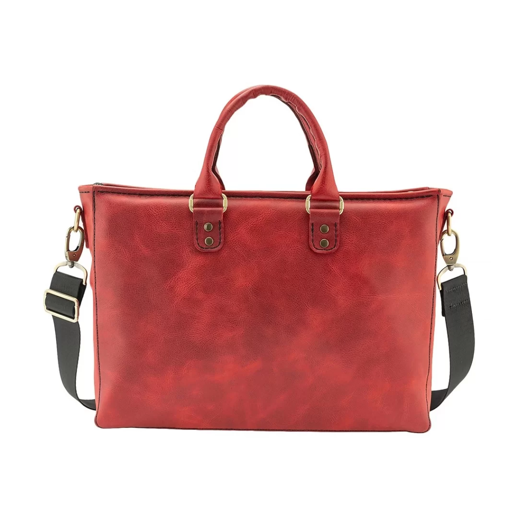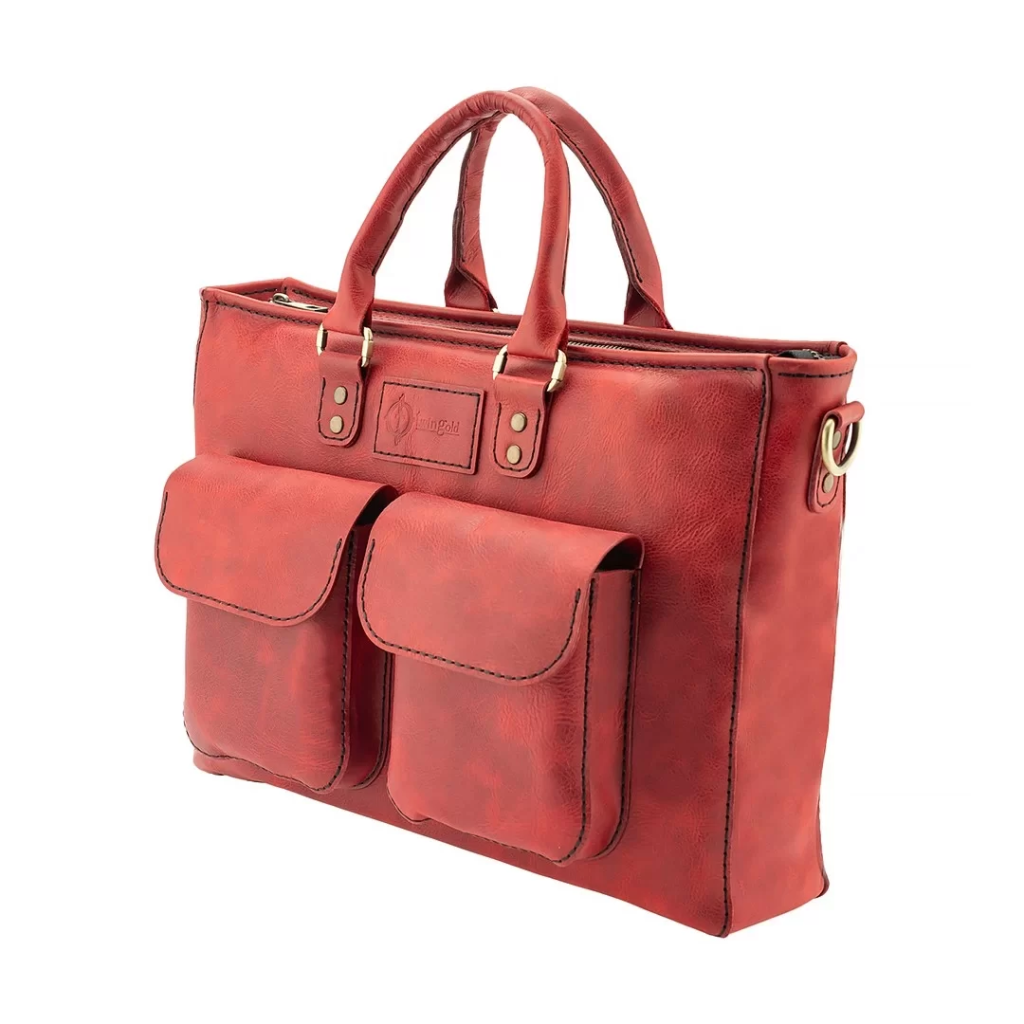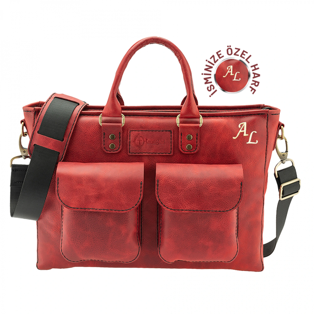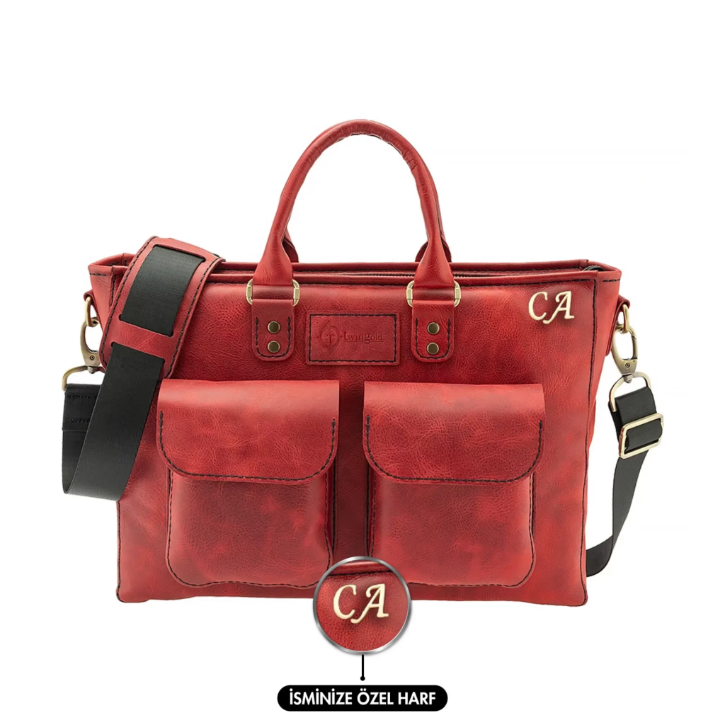 İsme Özel Askılı Cepli Evrak - Laptop Çantası - %100 Rainbow Deri - AC09002 - Kırmızı