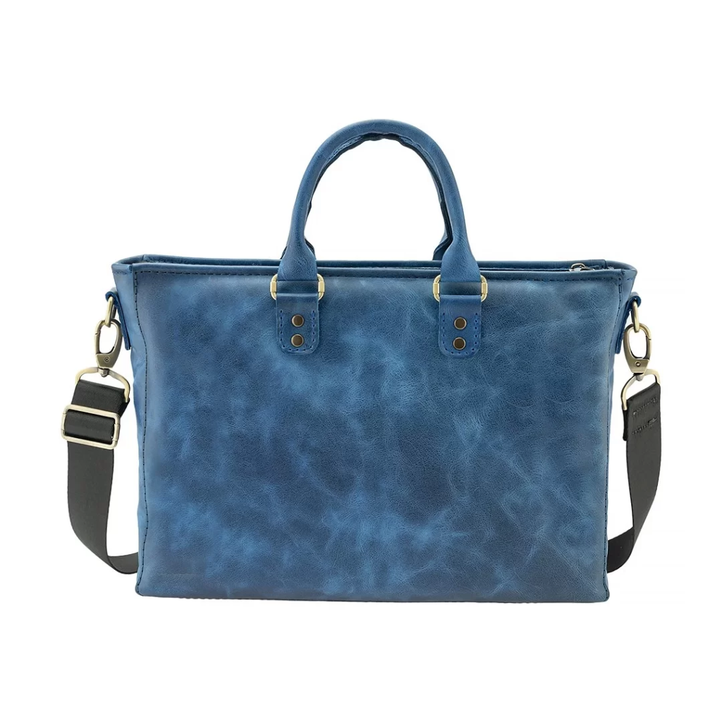 İsme Özel Askılı Cepli Evrak - Laptop Çantası - %100 Rainbow Deri - AC09002 - Saks Mavisi