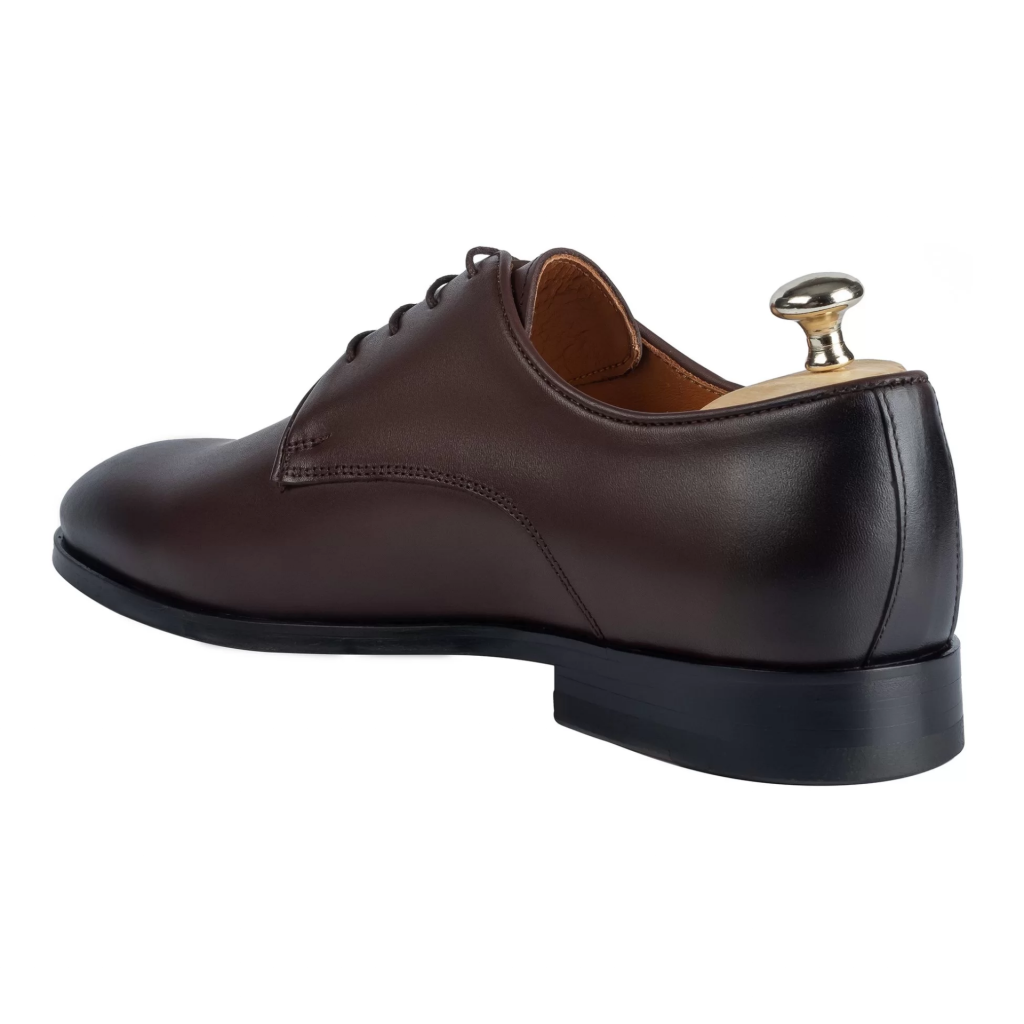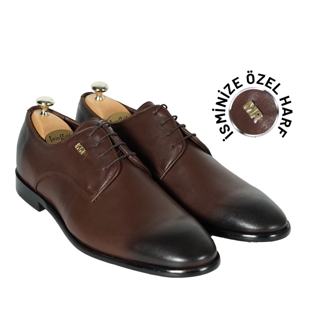 İsme Özel Bağcıklı Kösele Erkek Ayakkabı - %100 Hakiki Antik Deri - Gümüş Konseptli- AA01009 - Kahverengi