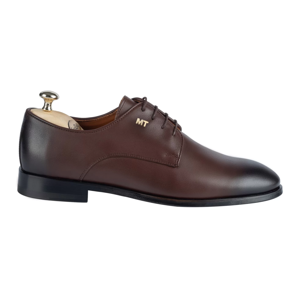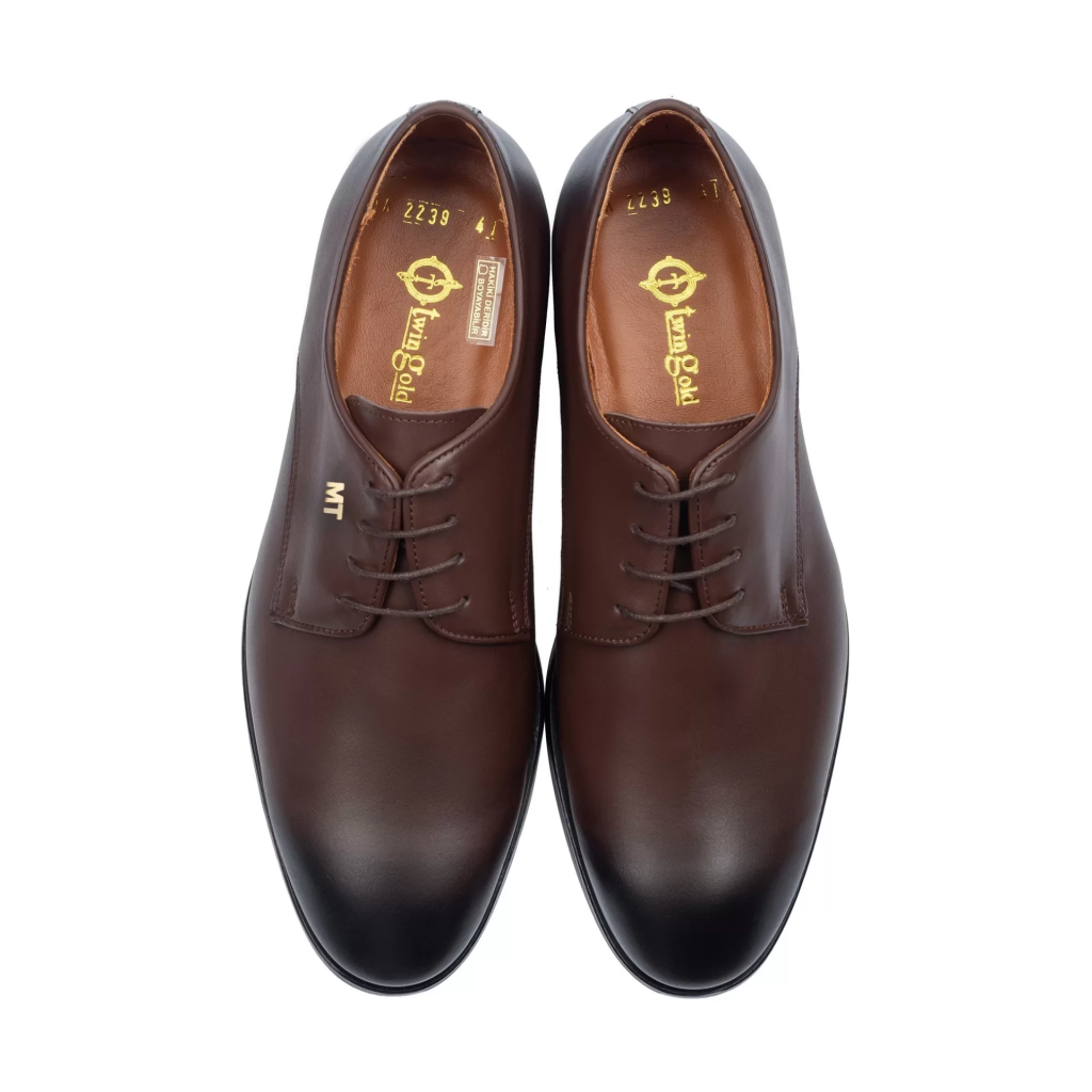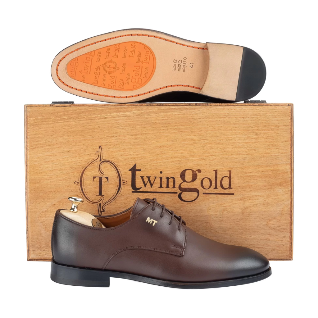 İsme Özel Bağcıklı Kösele Erkek Ayakkabı - %100 Hakiki Antik Deri - Altın Harf - AA01001 - Kahverengi