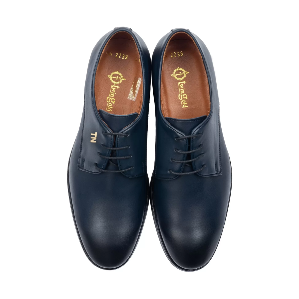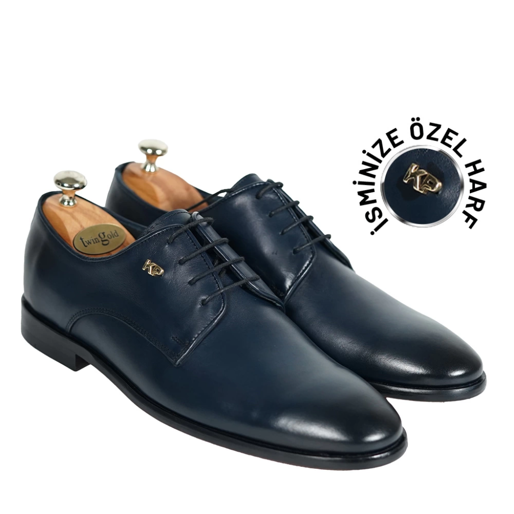 İsme Özel Bağcıklı Kösele Erkek Ayakkabı - %100 Hakiki Antik Deri - Altın Harf - AA01001 - Lacivert