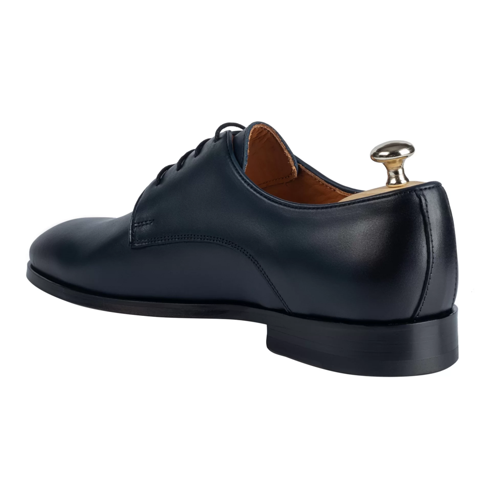 İsme Özel Bağcıklı Kösele Erkek Ayakkabı - %100 Hakiki Antik Deri - Gümüş Konseptli- AA01009 - Lacivert