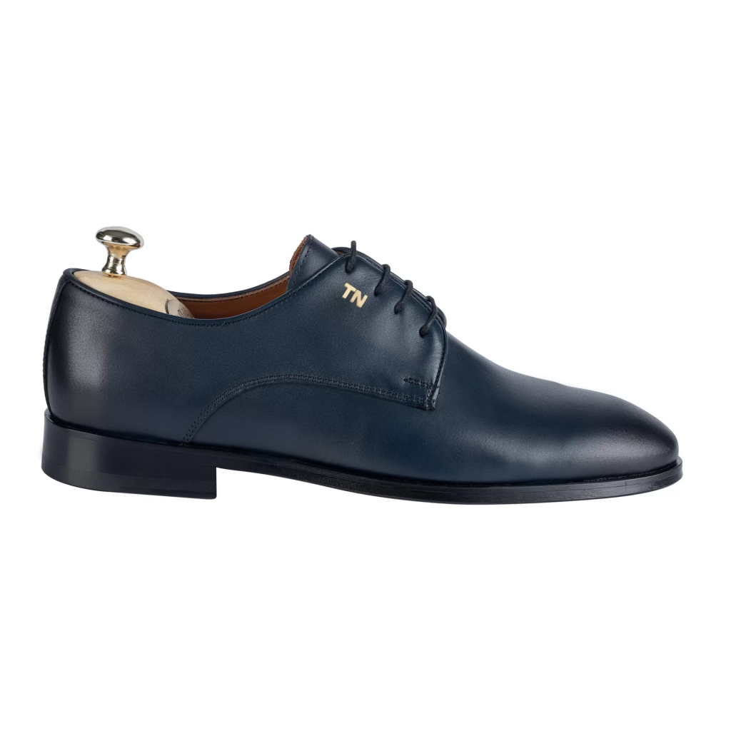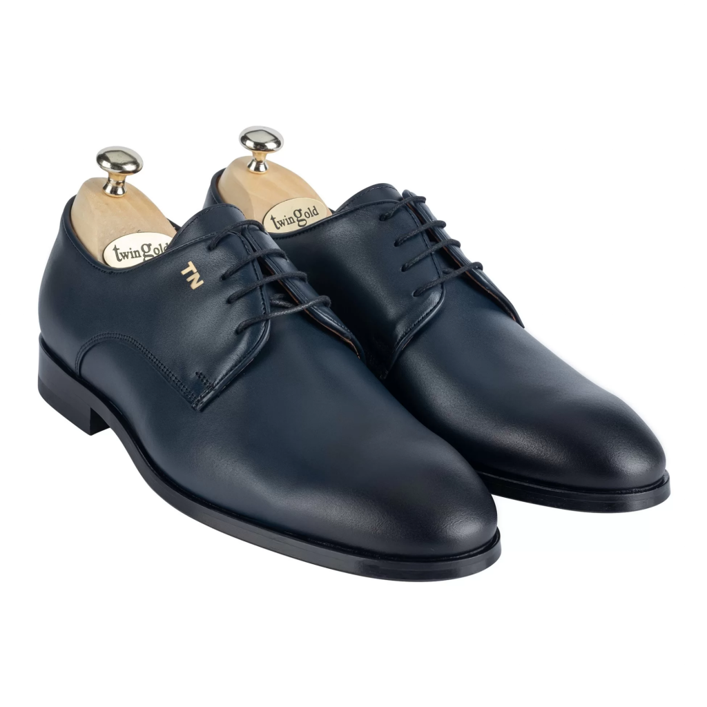 İsme Özel Bağcıklı Kösele Erkek Ayakkabı - %100 Hakiki Antik Deri - Altın Harf - AA01001 - Lacivert