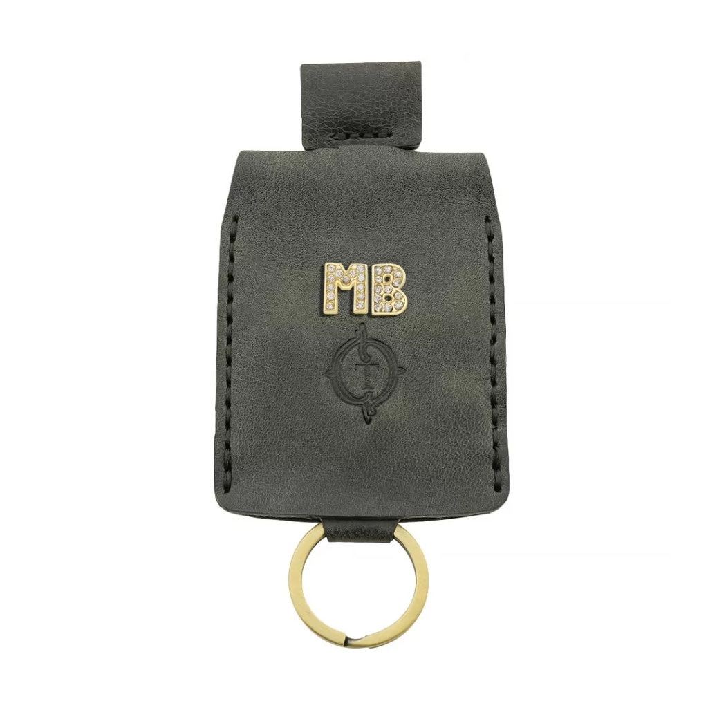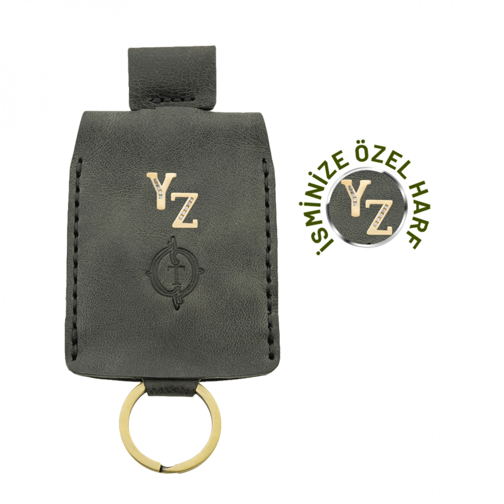 İsme Özel Çıtçıtlı Anahtarlık - % 100 Rainbow Deri - AG01001 - Antrasit