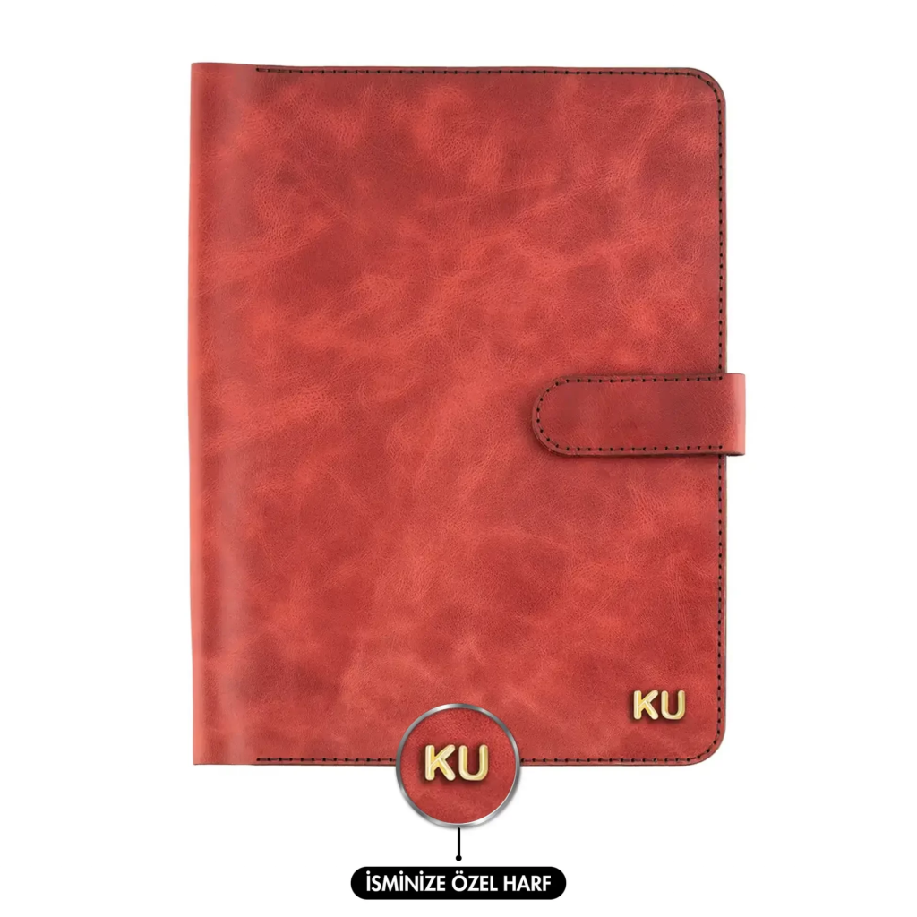 İsme Özel Çıtçıtlı Fonksiyonlu iPad Organizer - %100 Rainbow Deri - ET01002 - Kırmızı