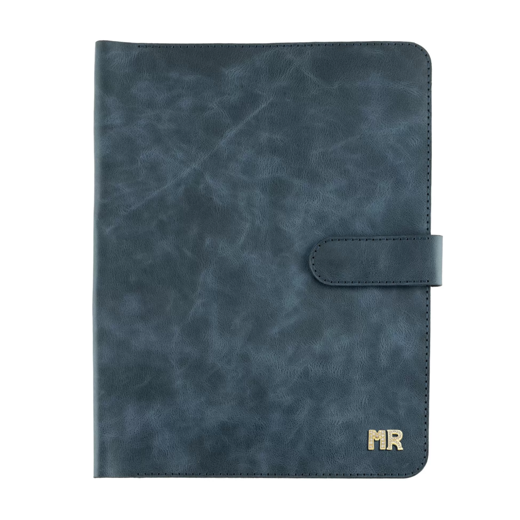 İsme Özel Çıtçıtlı Fonksiyonlu iPad Organizer - %100 Rainbow Deri - ET01002 - Lacivert