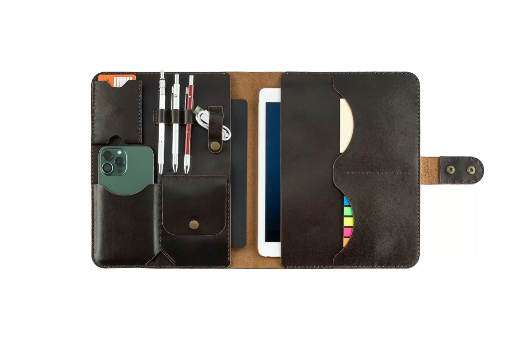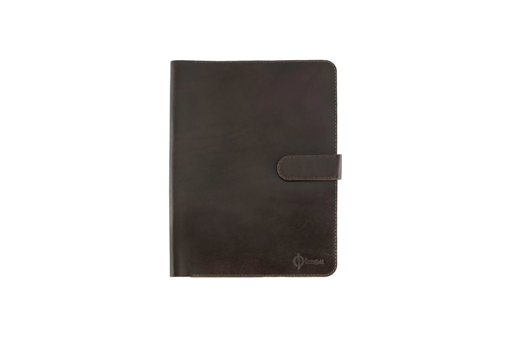 İsme Özel Çıtçıtlı Fonksiyonlu iPad Organizer - %100 Tiesto Deri - ET01003 - Koyu Kahverengi
