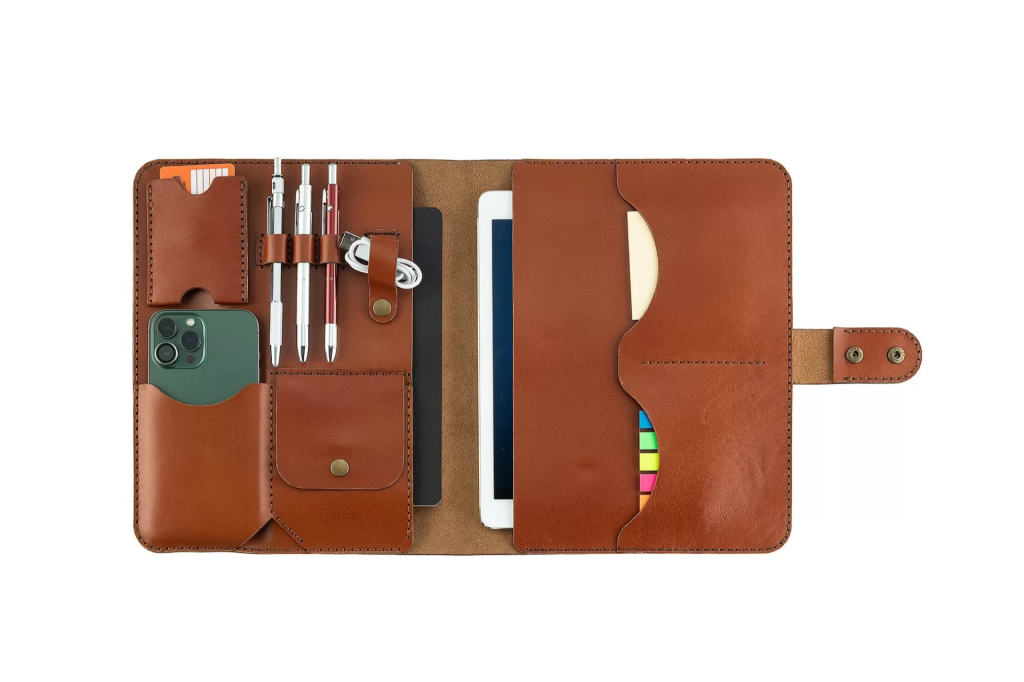 İsme Özel Çıtçıtlı Fonksiyonlu iPad Organizer - %100 Tiesto Deri - ET01003 - Tobacco