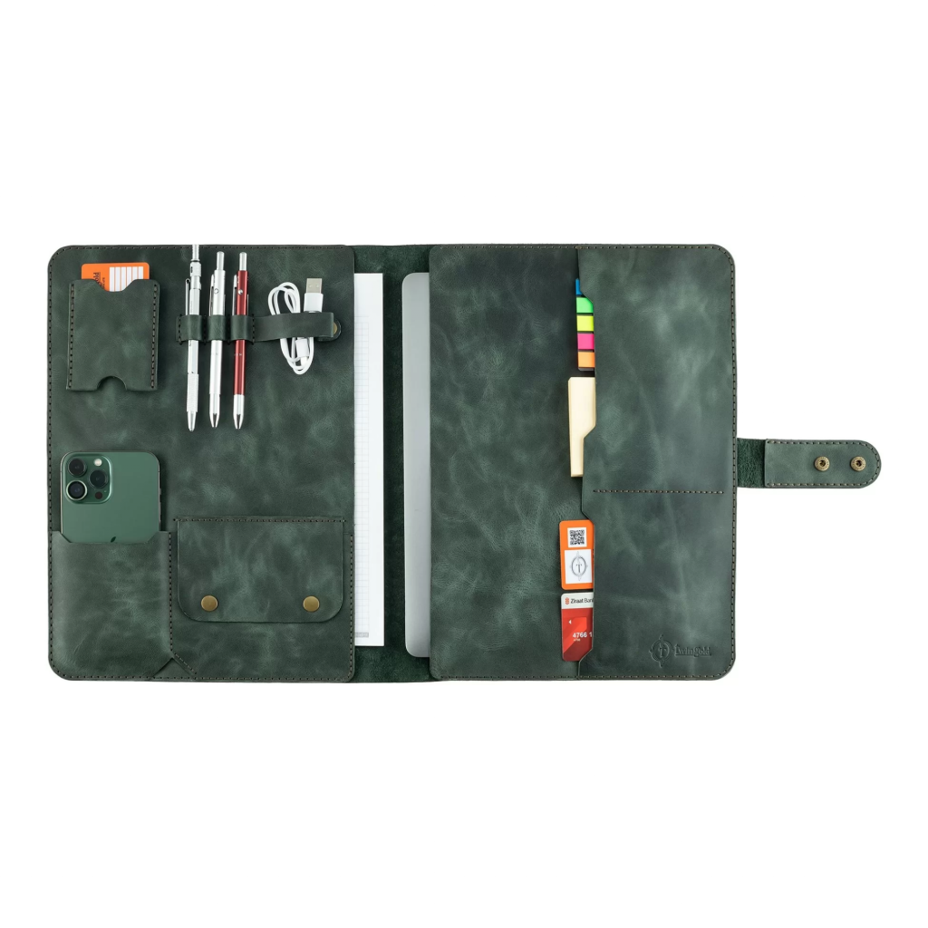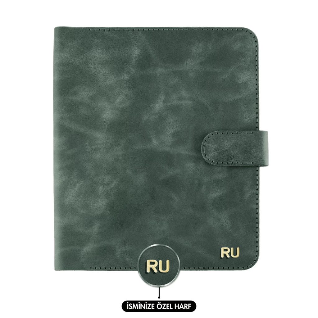 İsme Özel Çıtçıtlı Fonksiyonlu Macbook Organizer - %100 Rainbow Deri - ET02001 - Haki