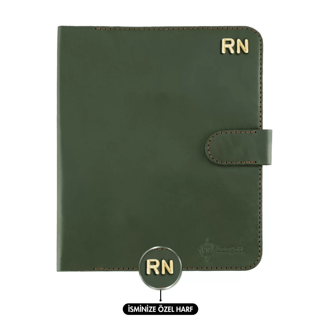 İsme Özel Çıtçıtlı Fonksiyonlu Macbook Organizer - %100 Tiesto Deri - ET02003 - Haki