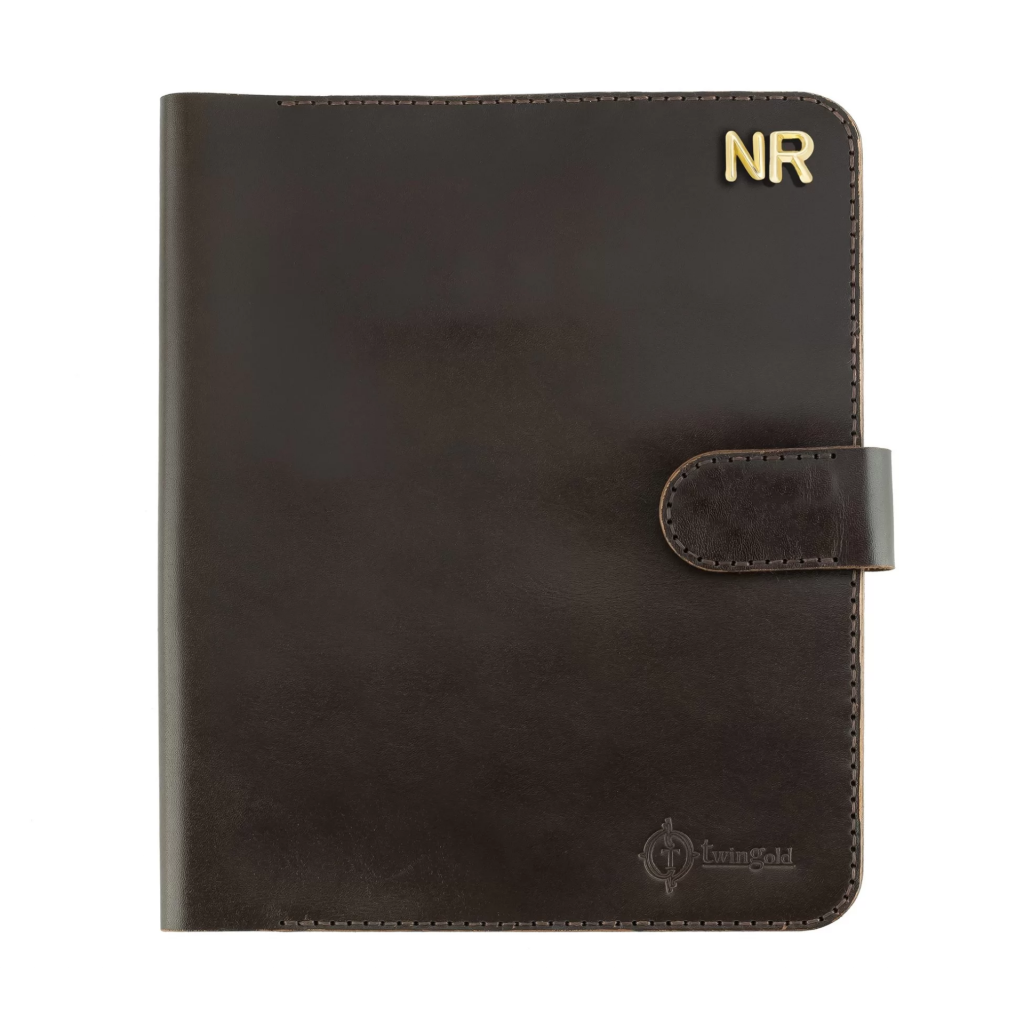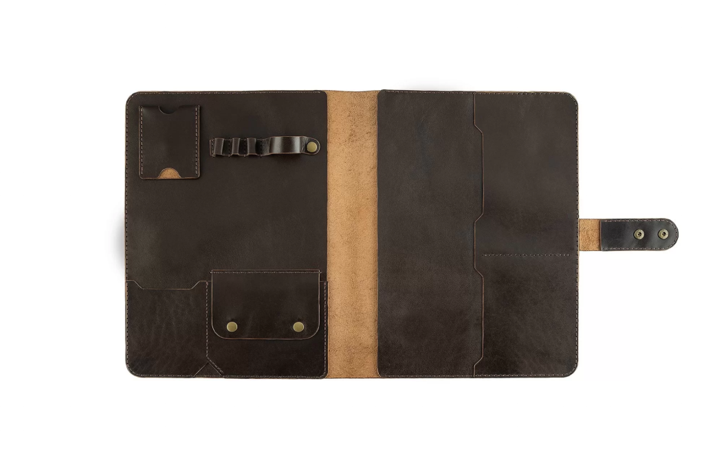 İsme Özel Çıtçıtlı Fonksiyonlu Macbook Organizer - %100 Tiesto Deri - ET02003 - Koyu Kahverengi