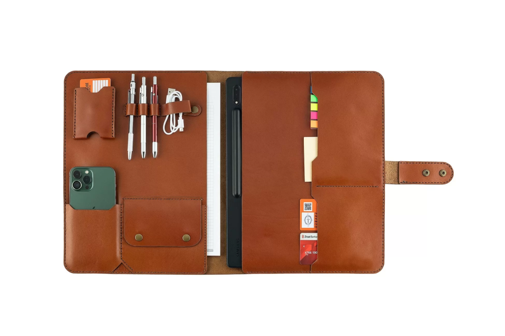 İsme Özel Çıtçıtlı Fonksiyonlu Macbook Organizer - %100 Tiesto Deri - ET02003 - Tobacco