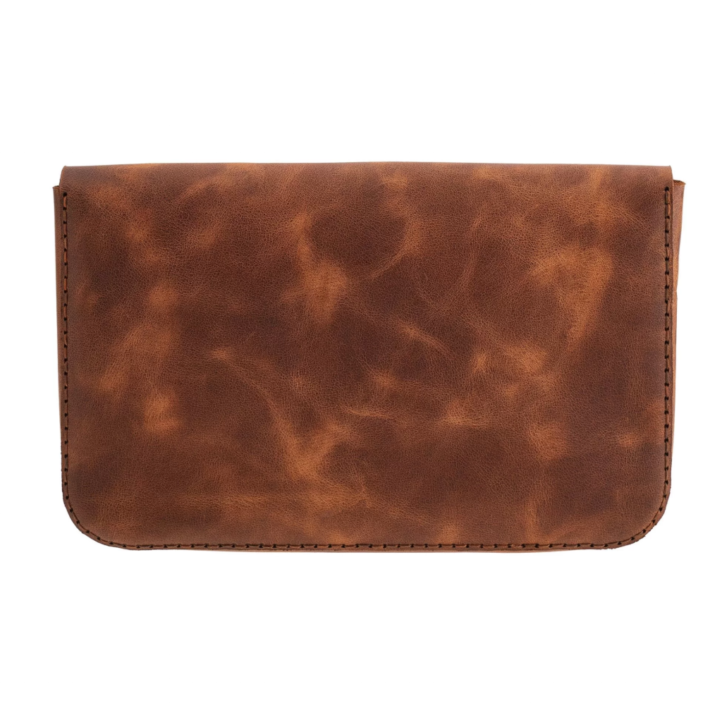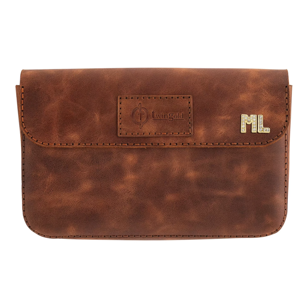 İsme Özel Çıtçıtlı Küçük El Çantası - %100 Rainbow Deri - AC14001 - Kahverengi