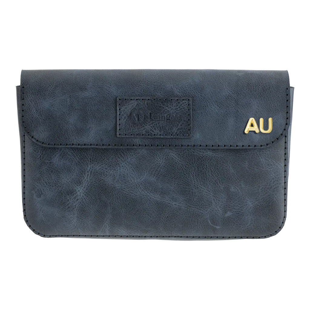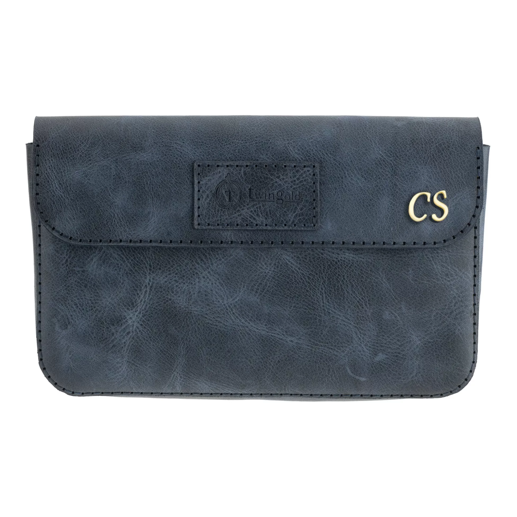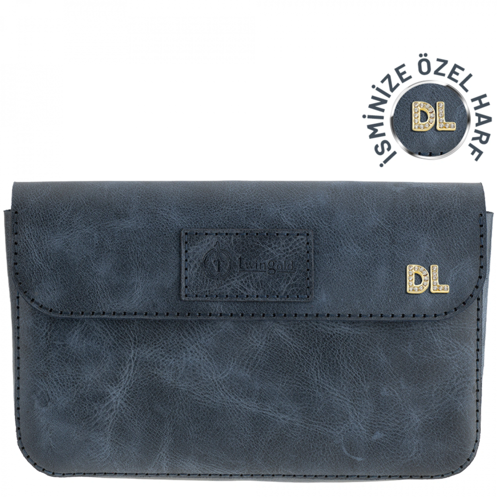 İsme Özel Çıtçıtlı Küçük El Çantası - %100 Rainbow Deri - AC14001 - Lacivert