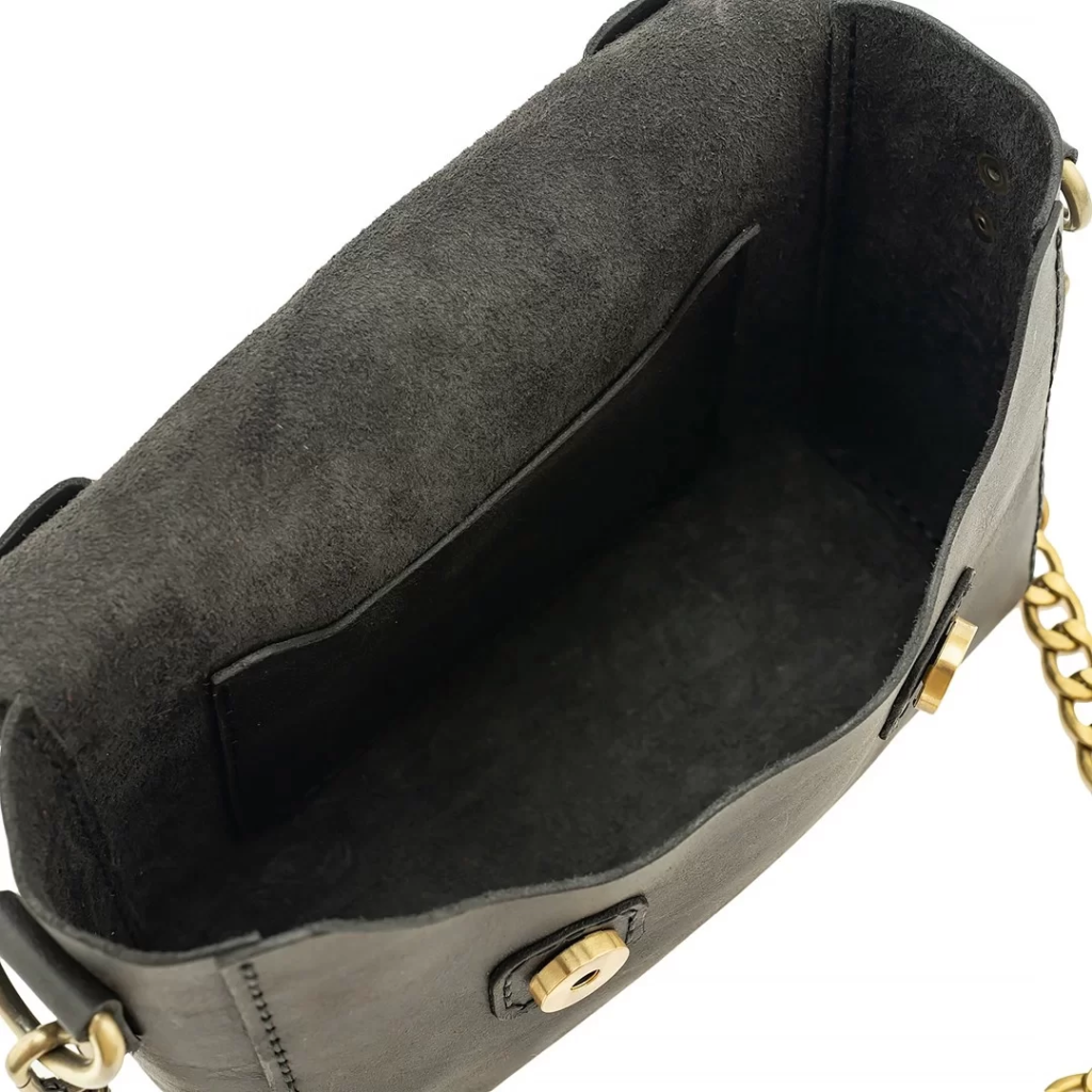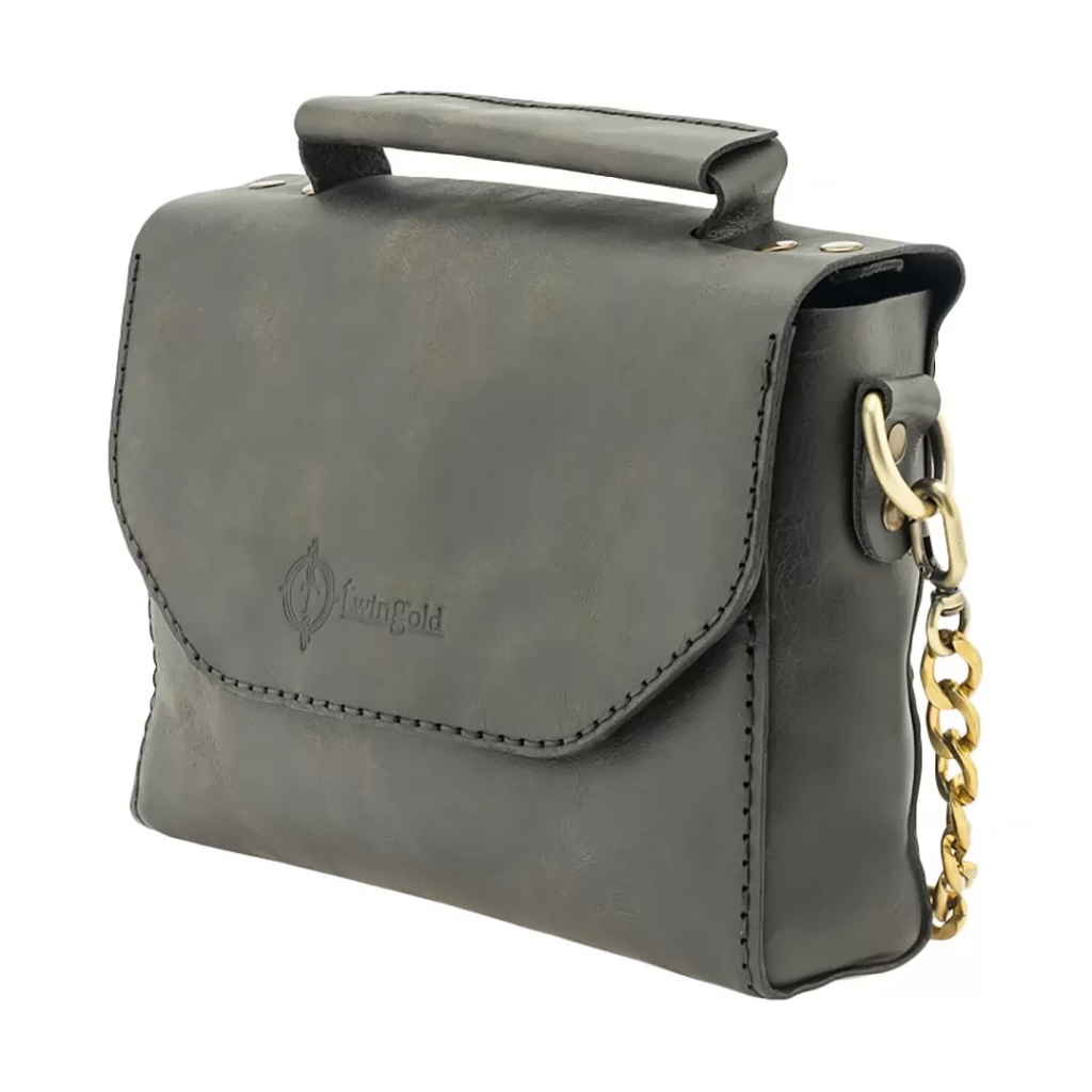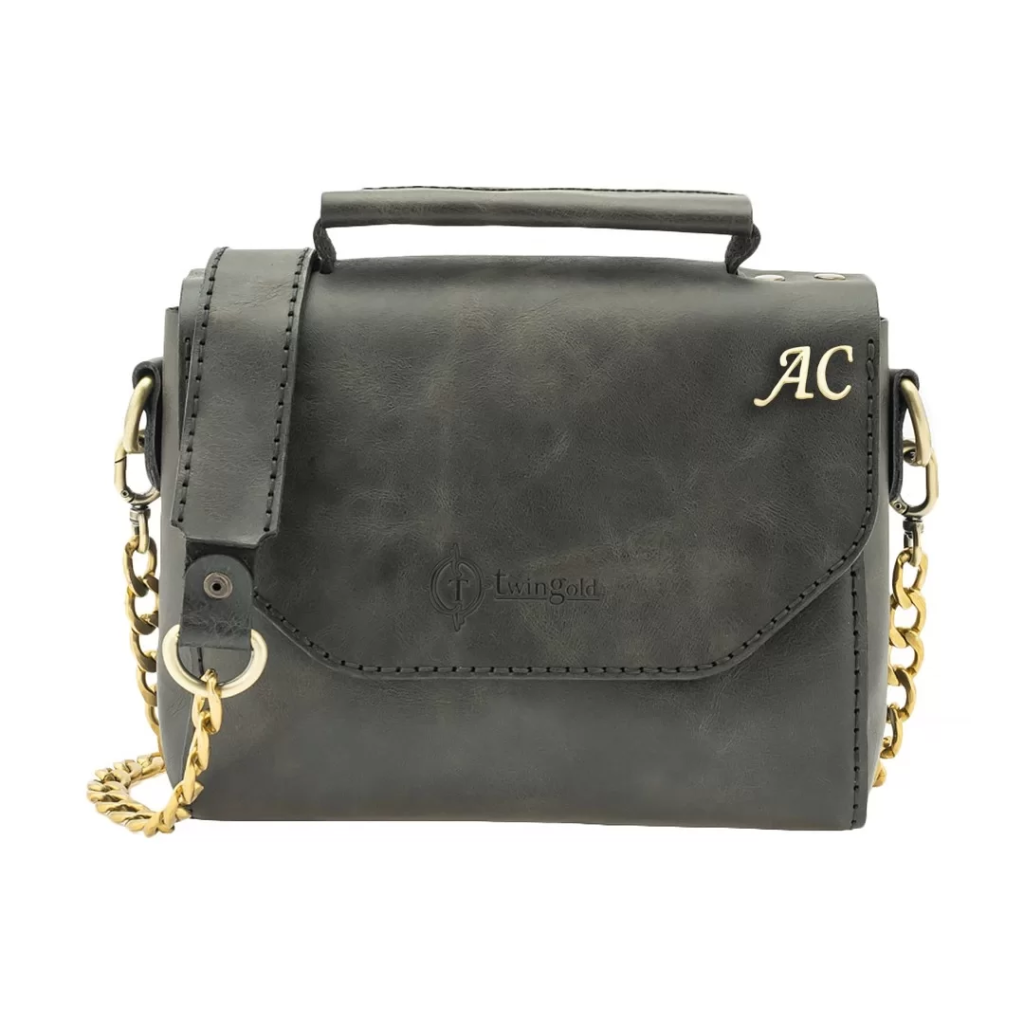İsme Özel Çıtçıtlı Zincirli Küçük Boy El Omuz Çantası - %100 Deri - AC03001 - Antrasit