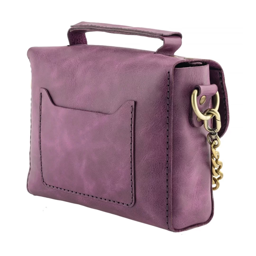 İsme Özel Çıtçıtlı Zincirli Küçük Boy El Omuz Çantası - %100 Deri - AC03001 - Mor