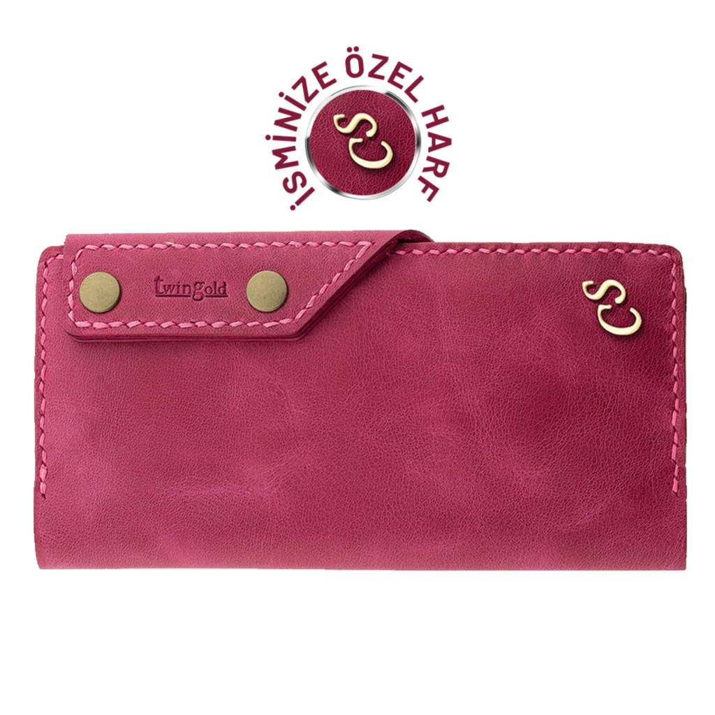 İsme Özel Dikey Çıtçıtlı Uzun Cüzdan - %100 Rainbow Deri - A010006 - Fuşya