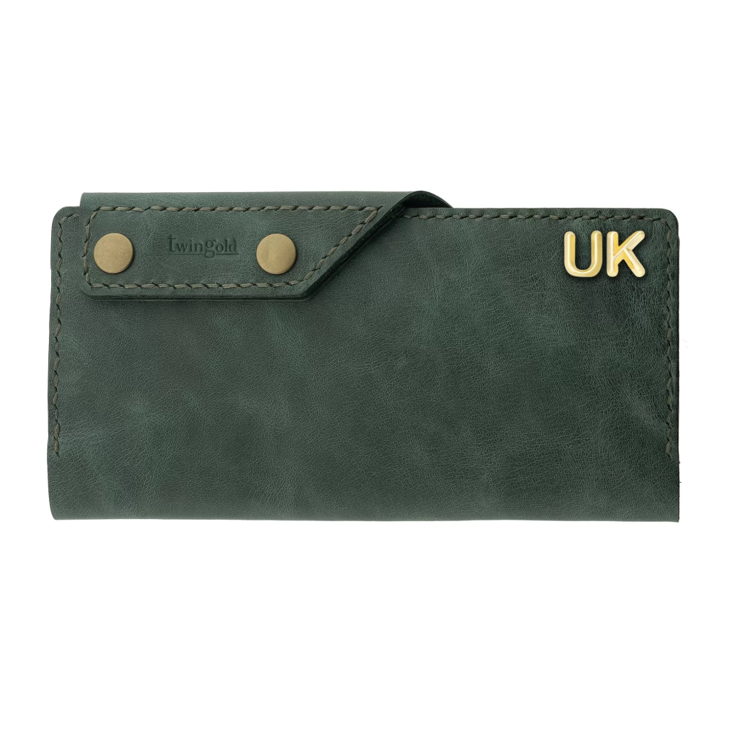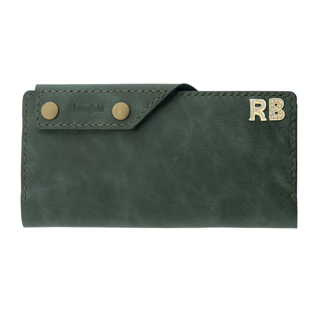 İsme Özel Dikey Çıtçıtlı Uzun Cüzdan - %100 Rainbow Deri - A010006 - Haki