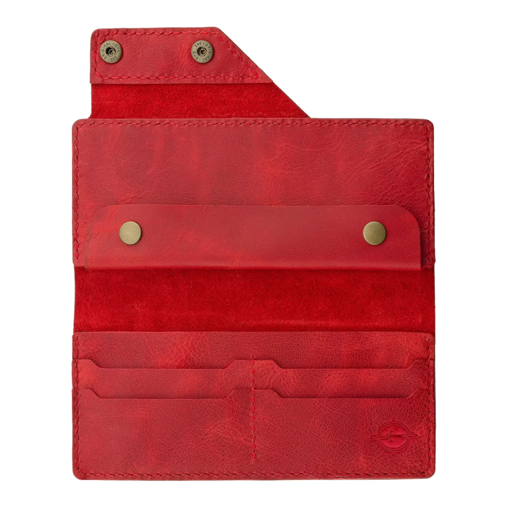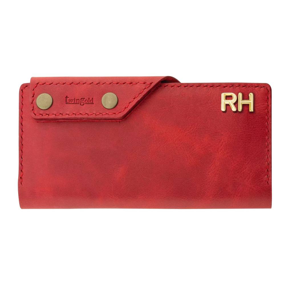 İsme Özel Dikey Çıtçıtlı Uzun Cüzdan - %100 Rainbow Deri - A010006 - Kırmızı