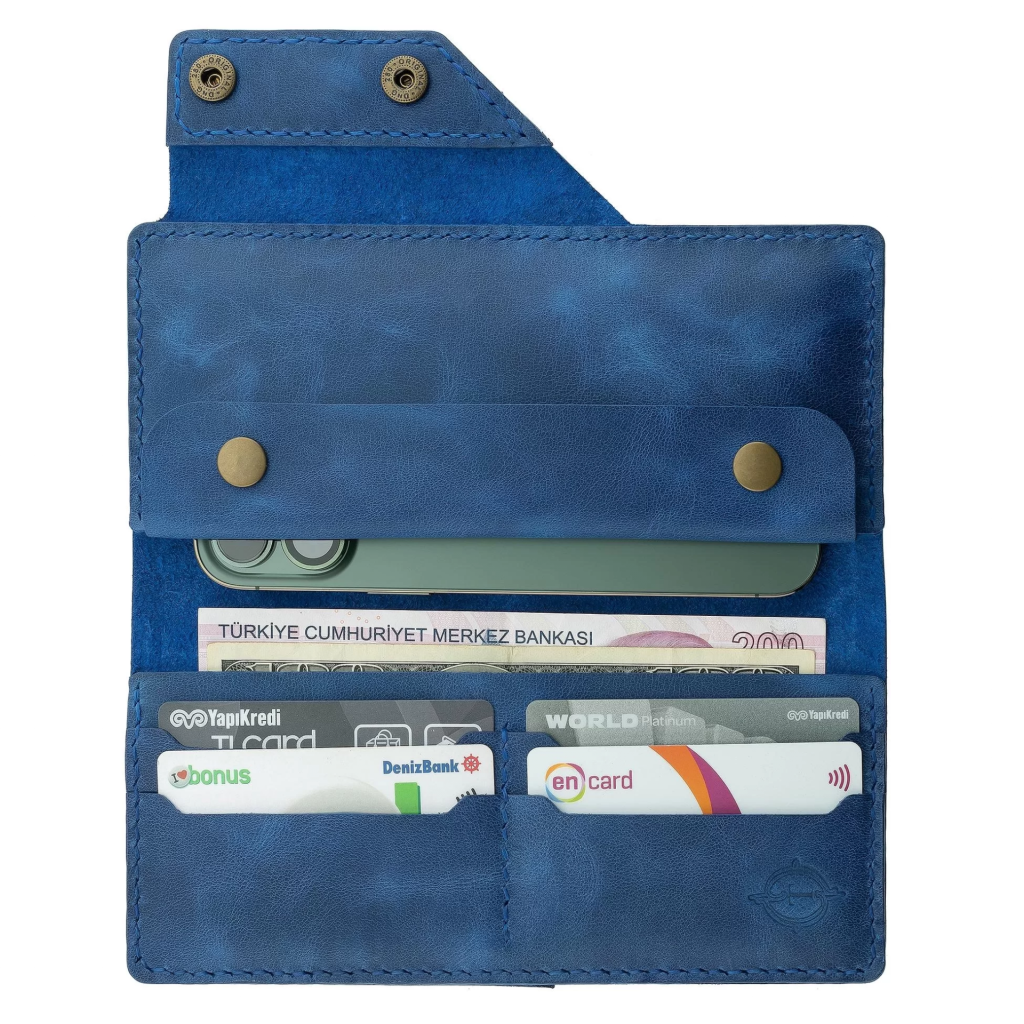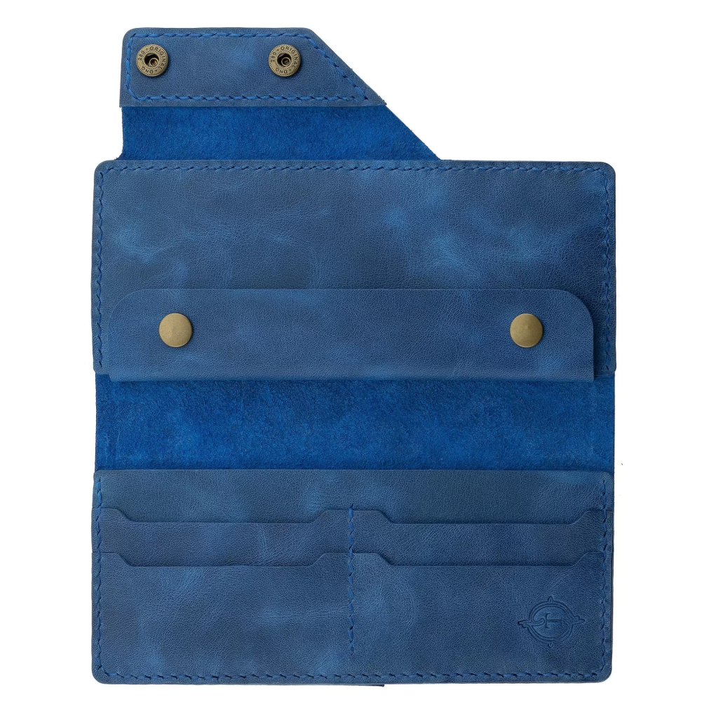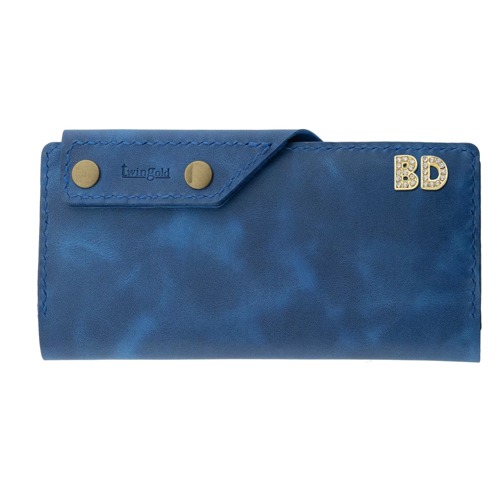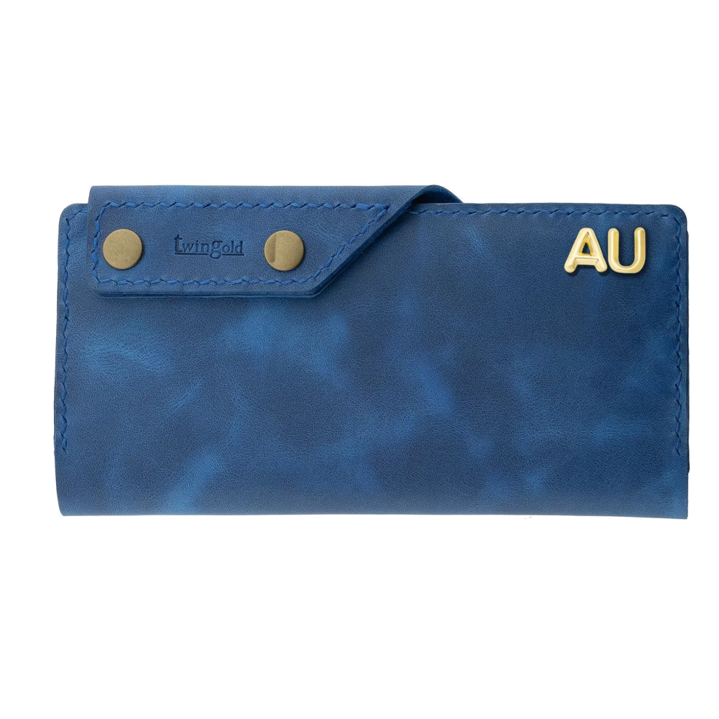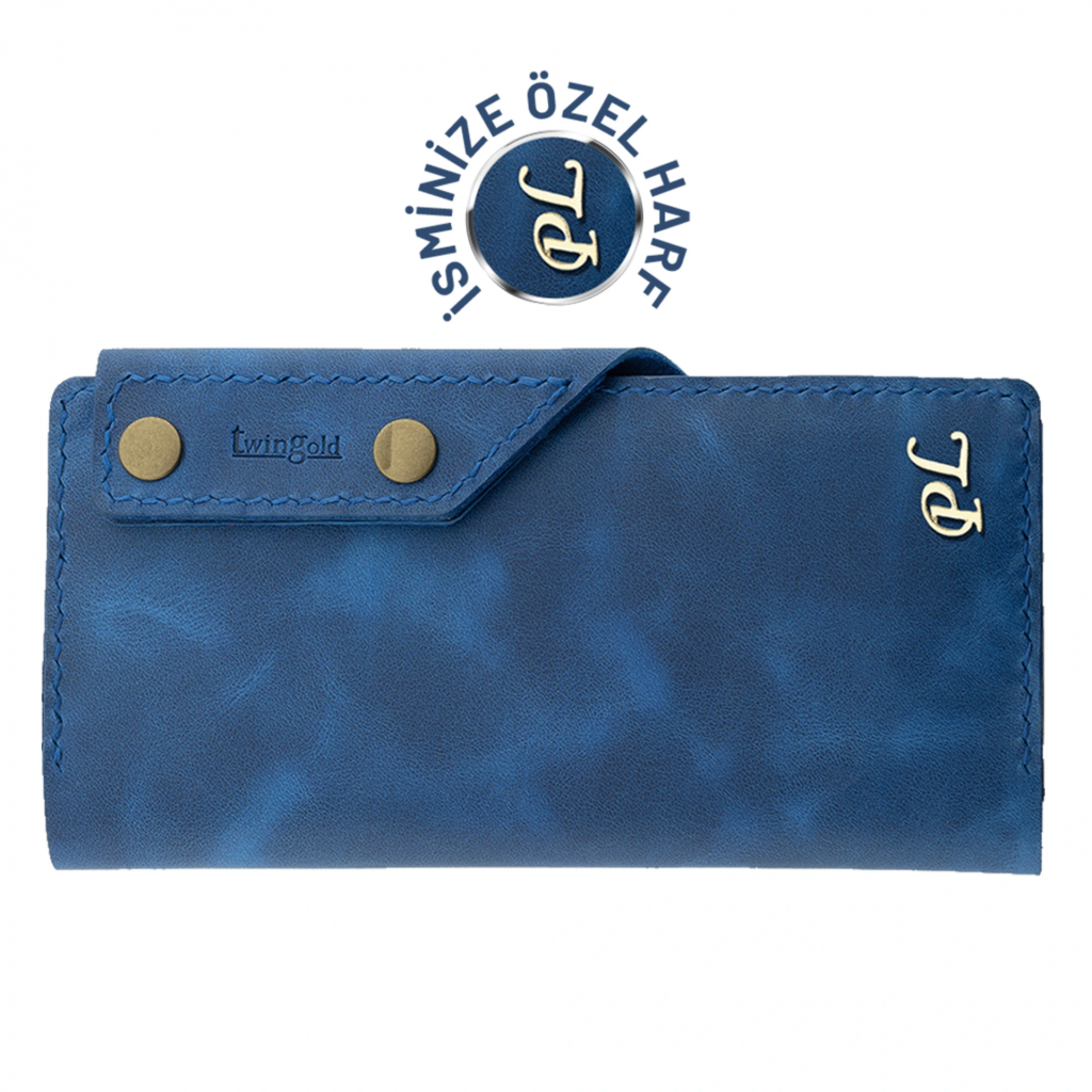 İsme Özel Dikey Çıtçıtlı Uzun Cüzdan - %100 Rainbow Deri - A010006 - Saks Mavisi