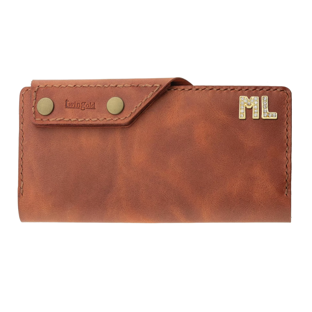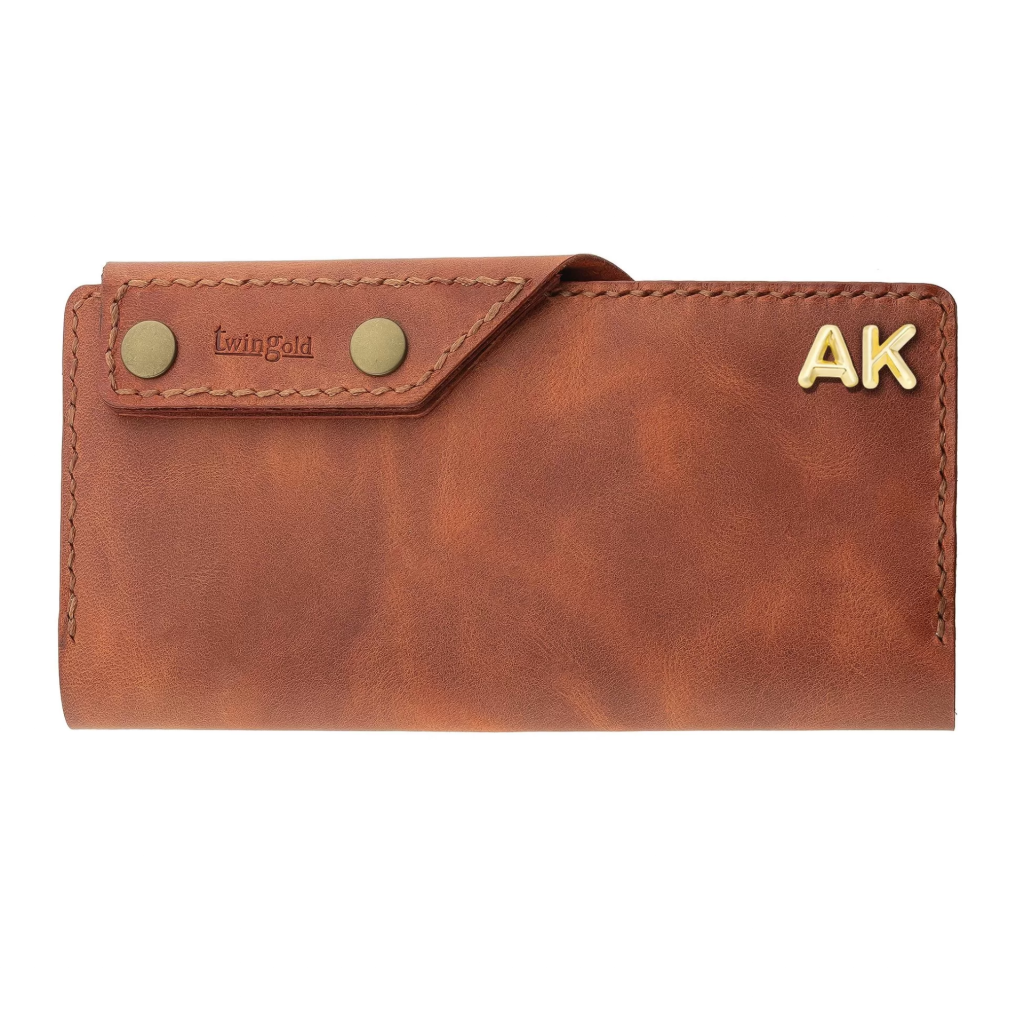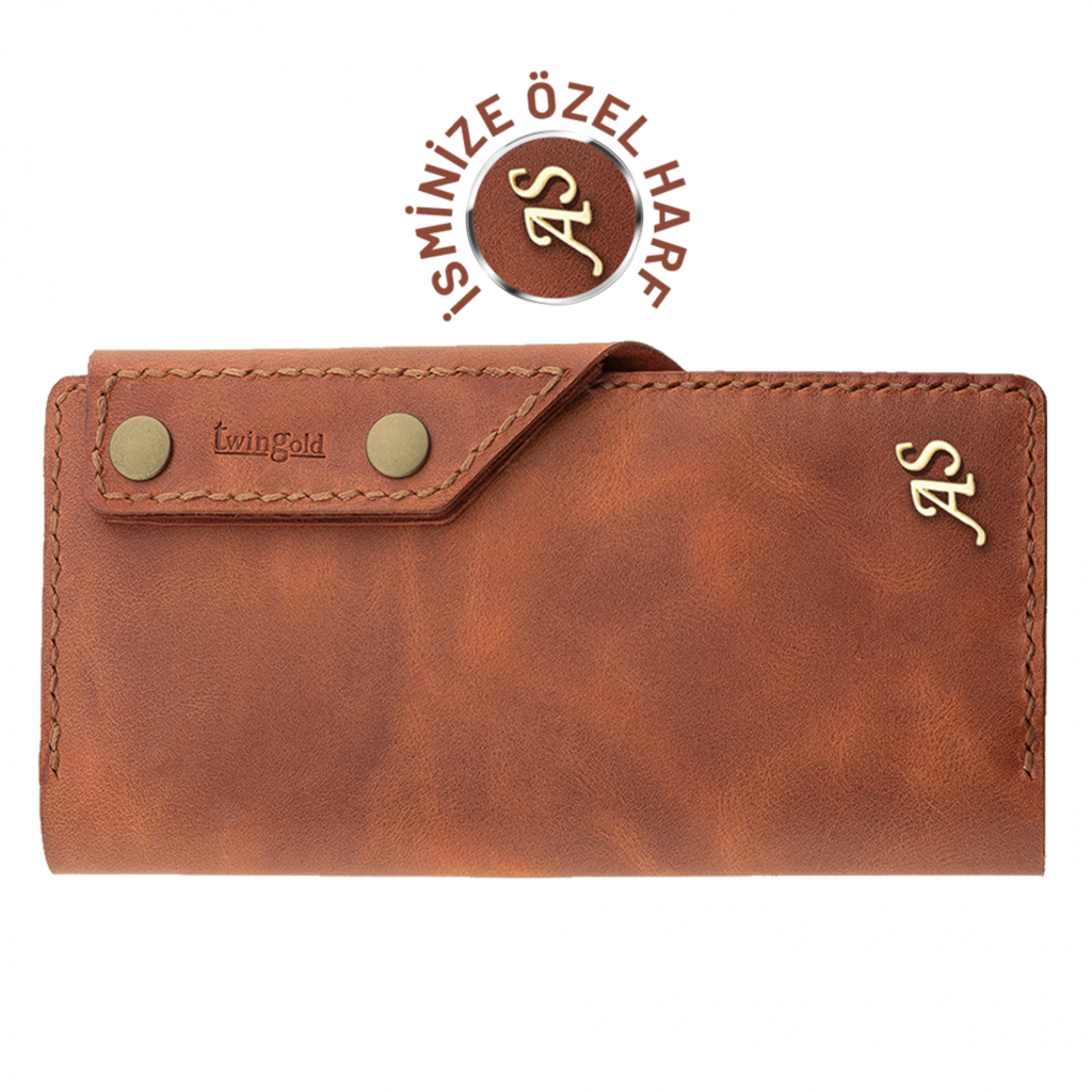 İsme Özel Dikey Çıtçıtlı Uzun Cüzdan - %100 Rainbow Deri - A010006 - Tobacco