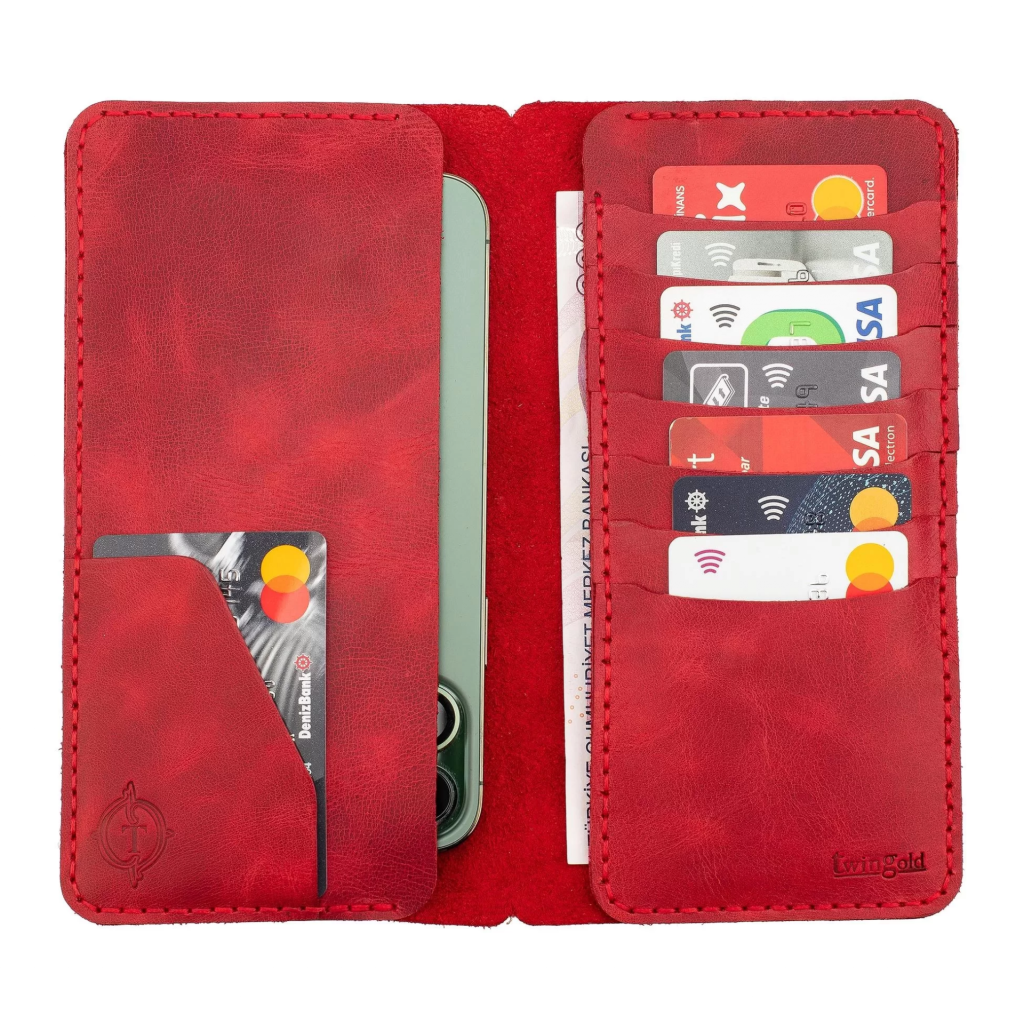 İsme Özel Dikey Uzun Cüzdan - %100 Rainbow Deri - A010007 - Kırmızı