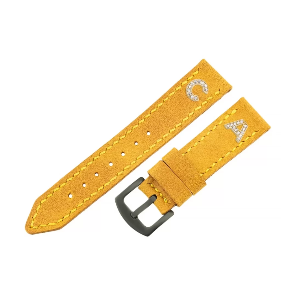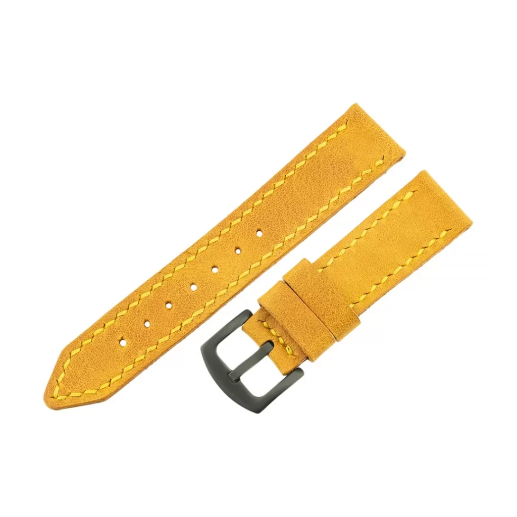 İsme Özel El Dikişli Saat Kordonu - %100 Çift Kat Deri - AG03003 - Hardal Sarısı