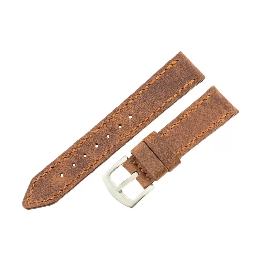 İsme Özel El Dikişli Saat Kordonu - %100 Crazy Deri - AG03002 - Taba