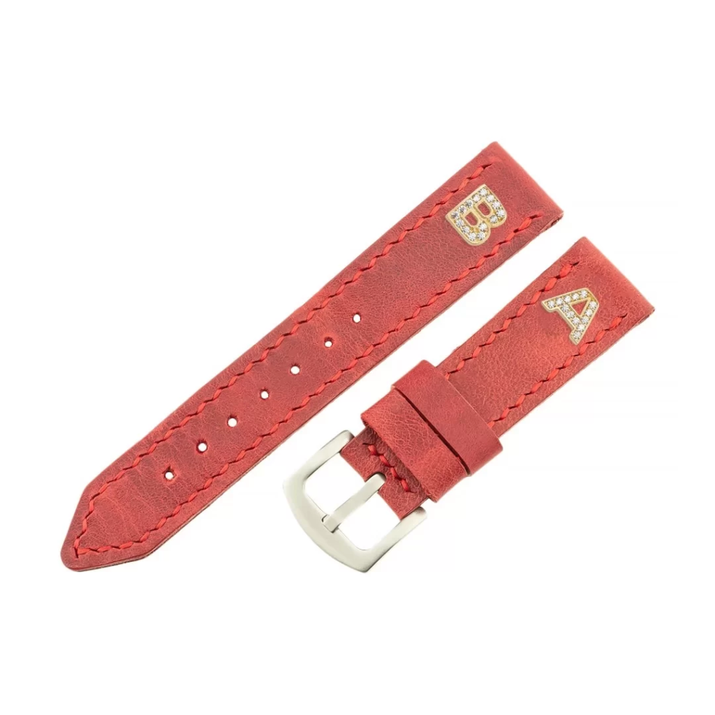 İsme Özel El Dikişli Saat Kordonu - %100 Çift Kat Deri - AG03003 - Kırmızı