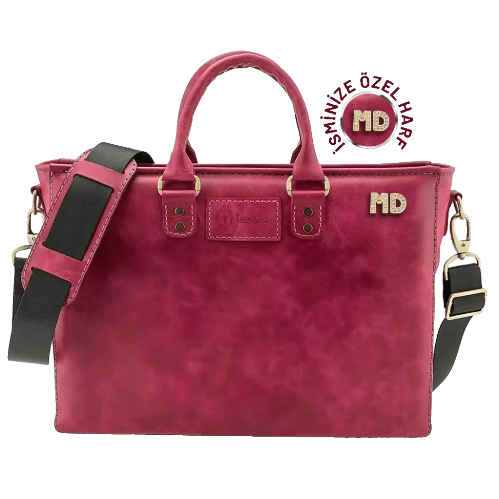 İsme Özel Günlük Kullanım El Omuz Evrak Laptop Çantası - %100 Deri - AC09004 - Fuşya