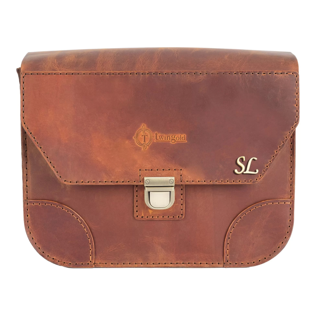 İsme Özel Günlük Orta Boy Omuz Çantası - %100 Crazy Deri - AC03002 - Taba