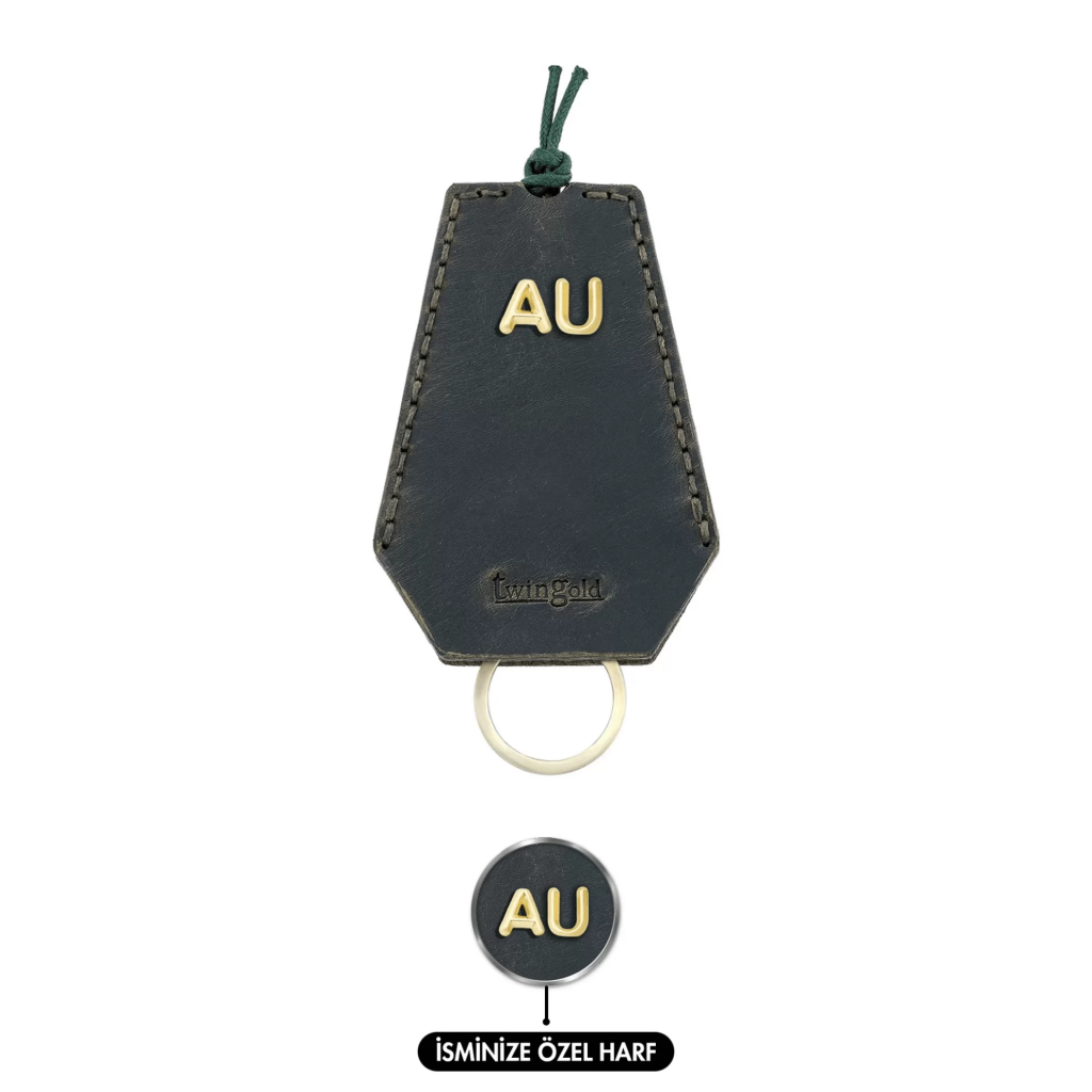 İsme Özel İpli Anahtarlık - % 100 Crazy Deri - AG01002 - Haki