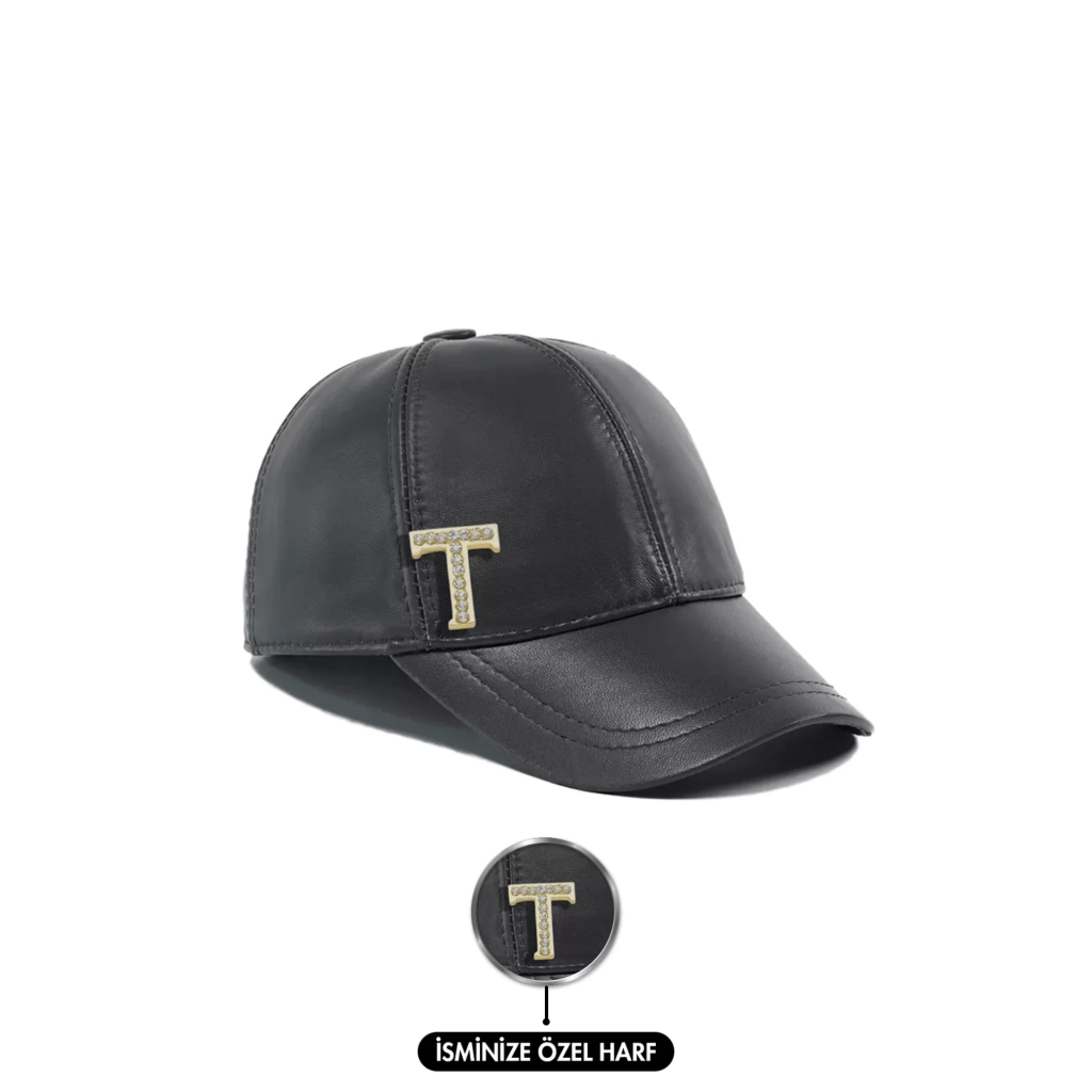 İsme Özel Kep Şapka - %100 Deri - AB01012 - Siyah
