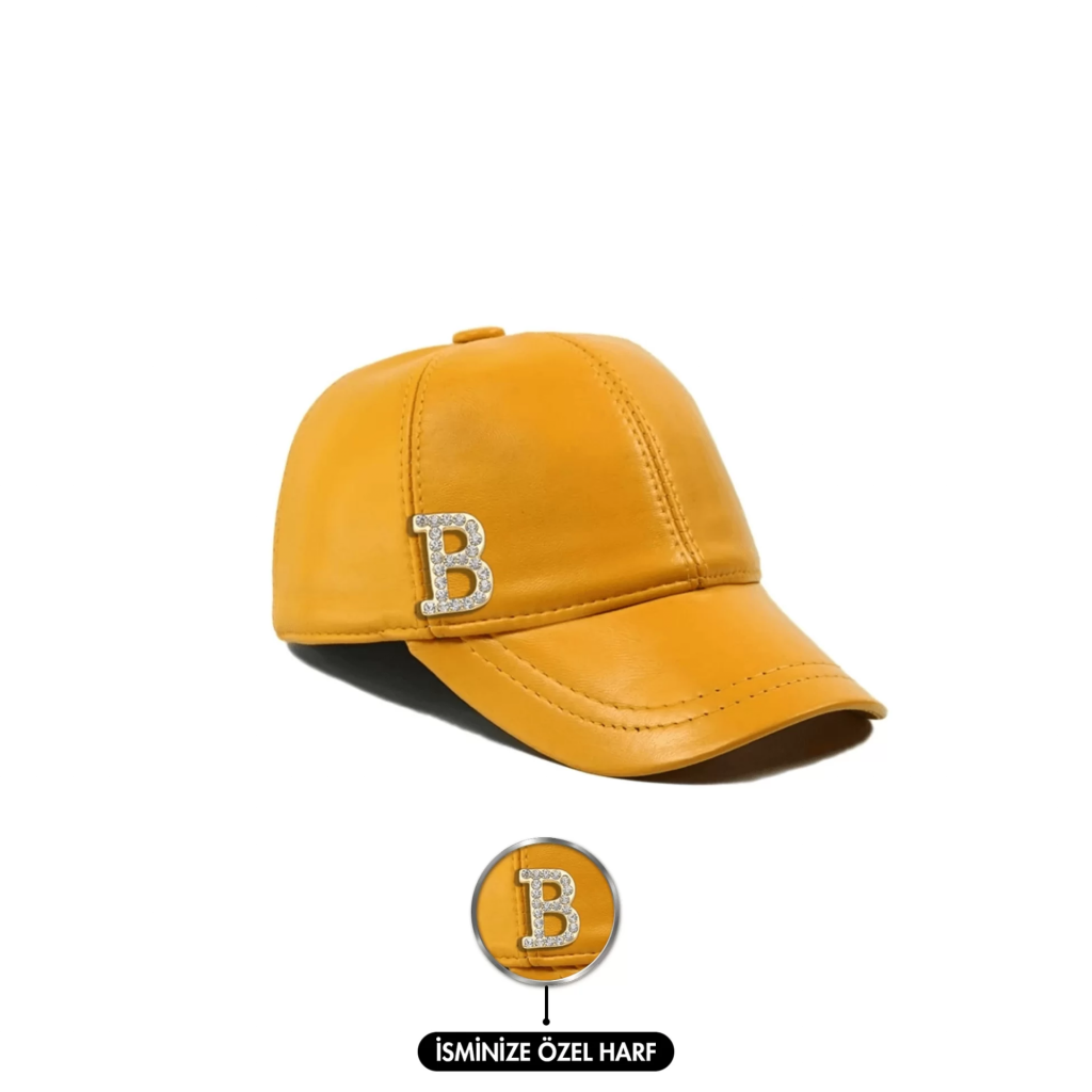İsme Özel Kep Şapka - %100 Deri - AB01012 - Sarı