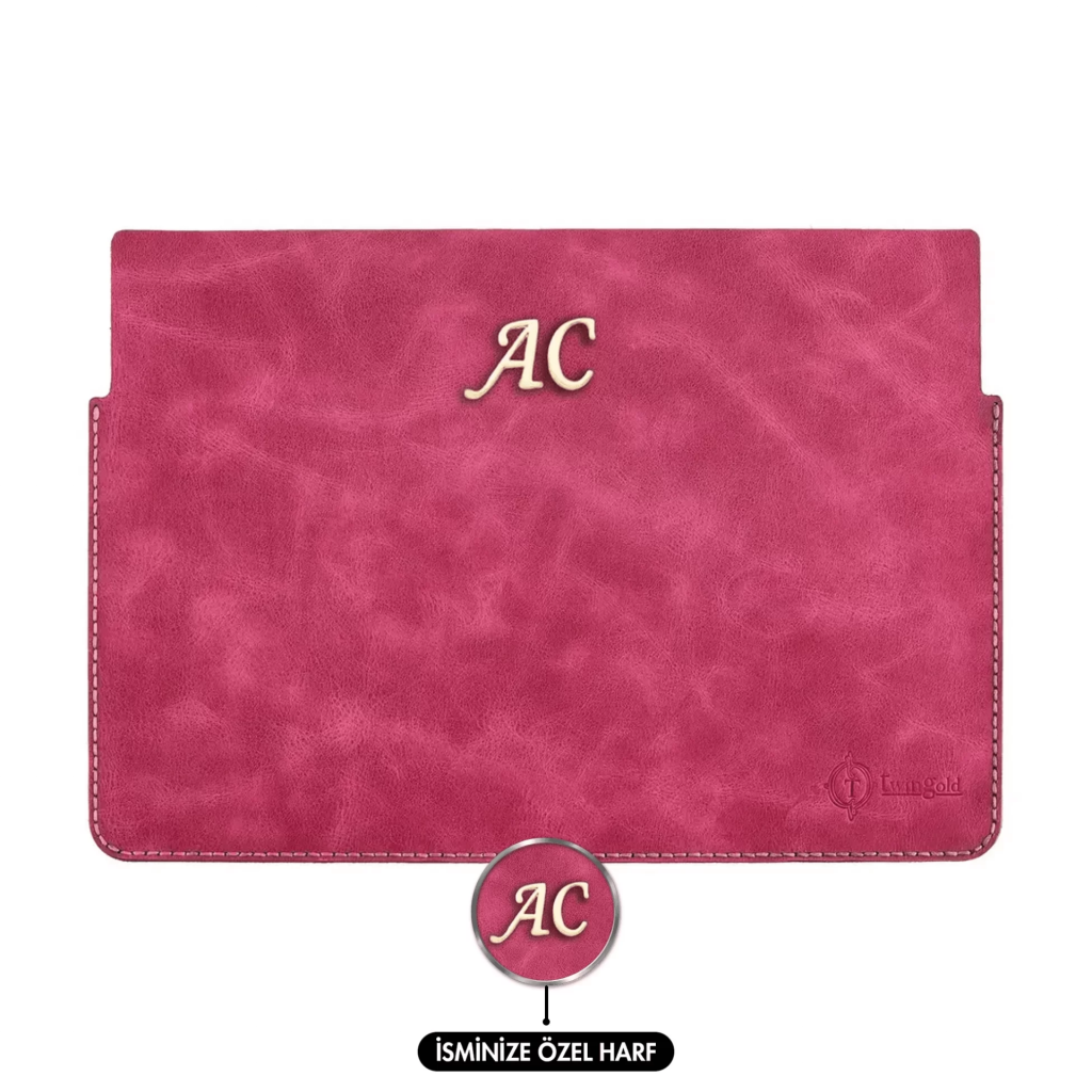 İsme Özel Macbook Kılıfı - %100 Rainbow Deri - ET02002 - Fuşya