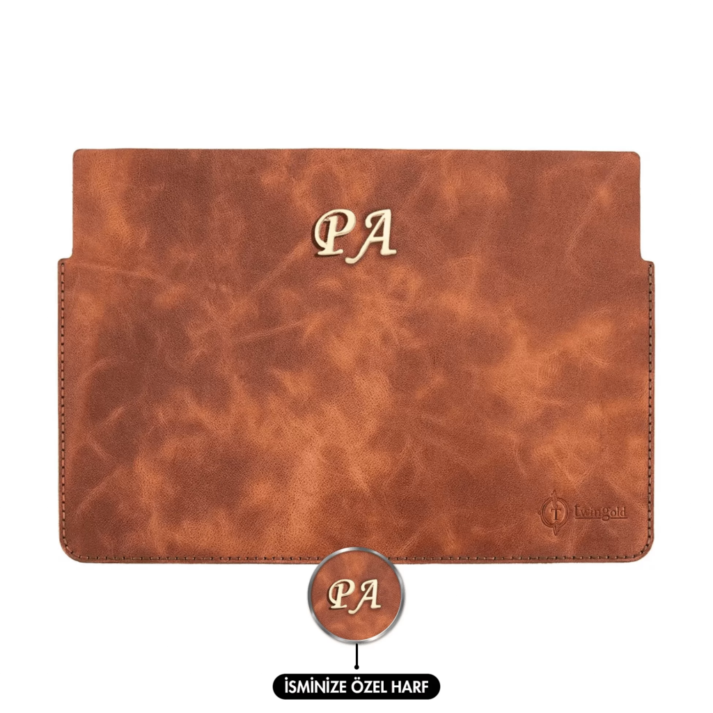 İsme Özel Macbook Kılıfı - %100 Rainbow Deri - ET02002 - Tobacco