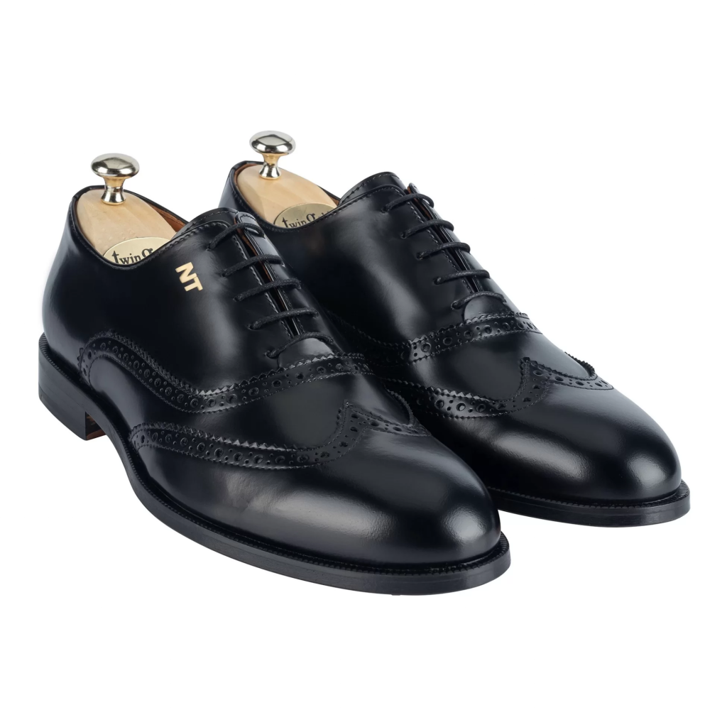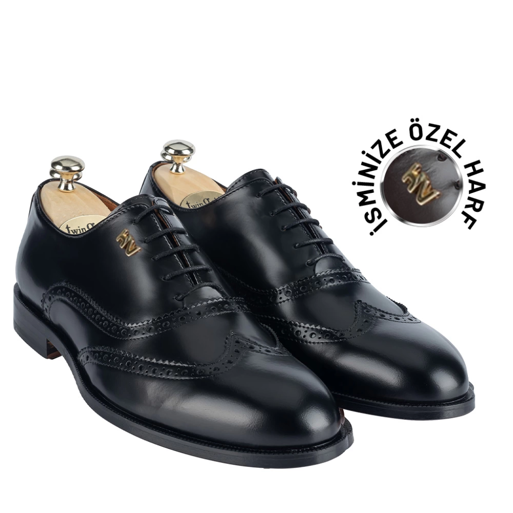İsme Özel Oxford Erkek Ayakkabı - %100 Hakiki Açma Deri - Altın Harf - AA01004 - Siyah