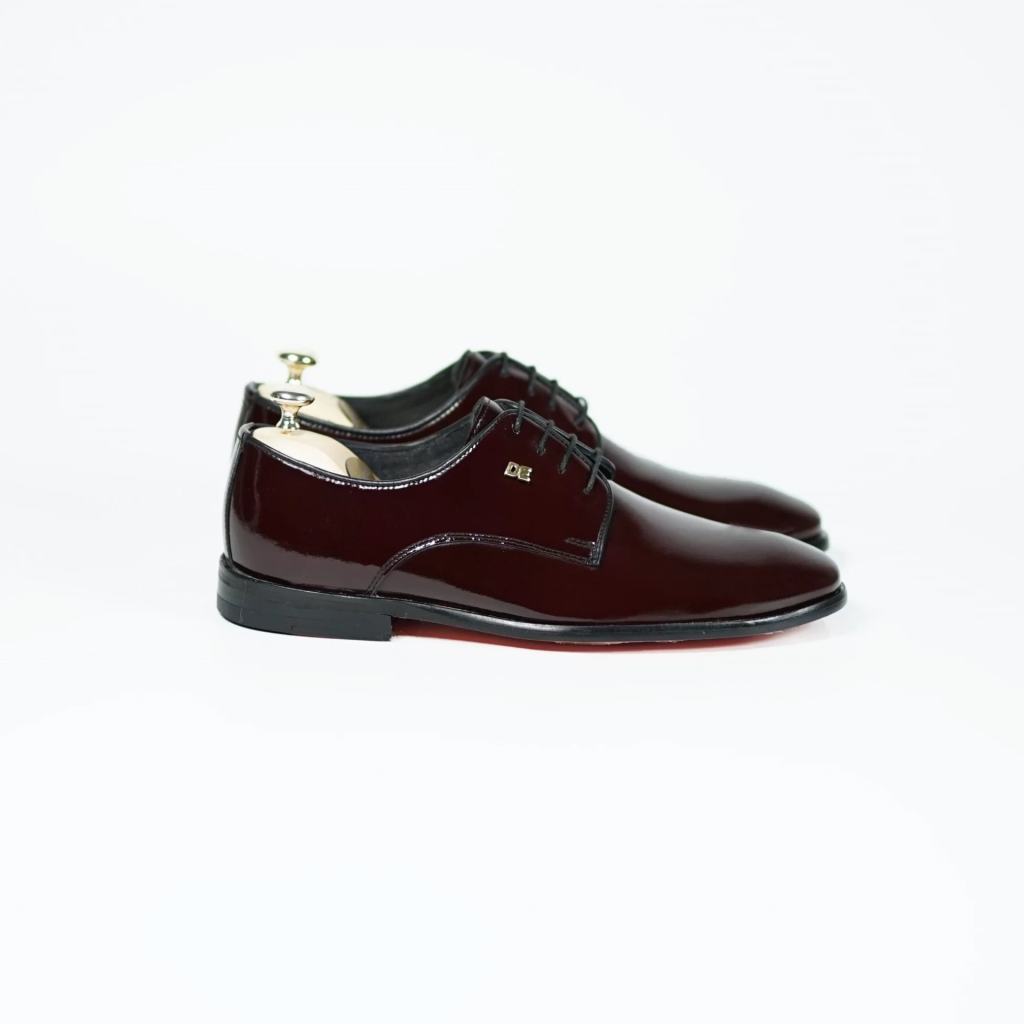 İsme Özel Rugan Bağcıklı Kösele Erkek Ayakkabı - %100 Hakiki Deri - Altın Harf - AA01006 - Bordo