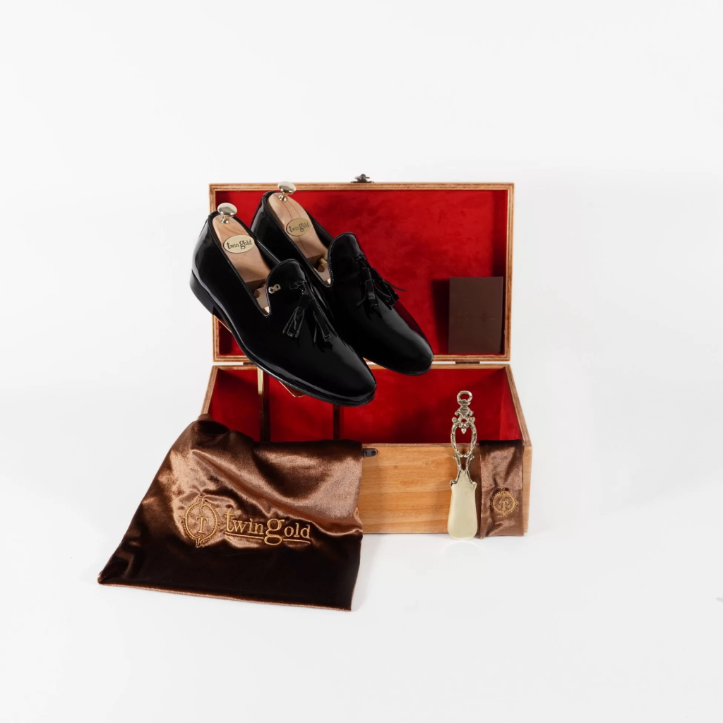 Altın harfli ayakkabılarımız ahşap kutusunda, meşe kalıp, pirinç çekecek, altın sertifikası ve toz torbasıyla birlikte gönderilmektedir.