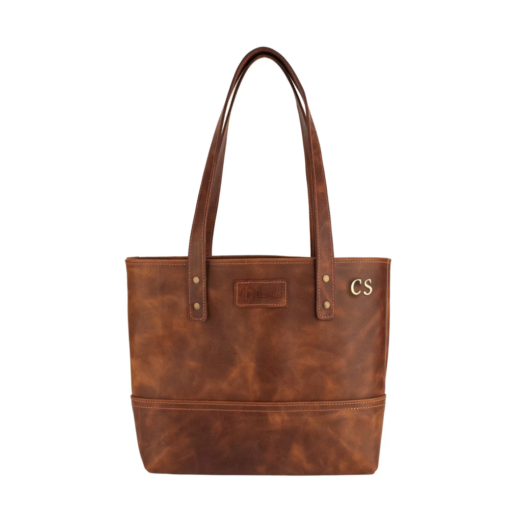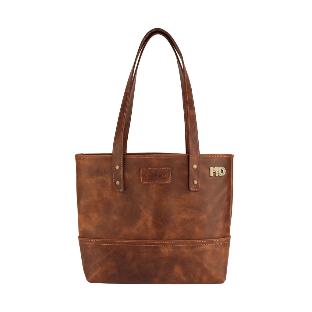İsme Özel Tote Bag El Omuz Çantası - %100 Rainbow Deri - AC03003 - Tobacco