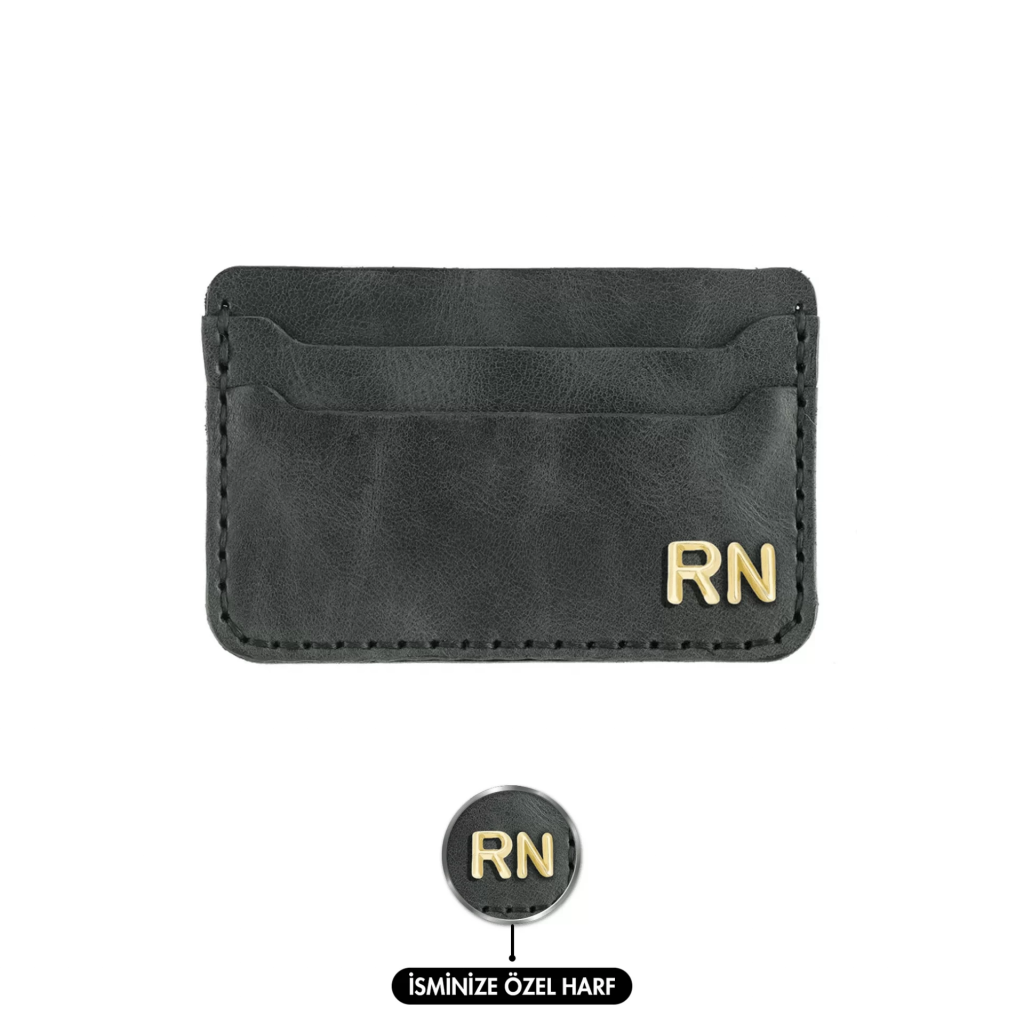 İsme Özel Yatay Kartlık - %100 Rainbow Deri - A011001 - Antrasit
