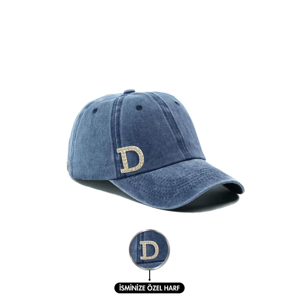 İsme Özel Yıkamalı Kep Şapka - AB01010 - Saks Mavisi
