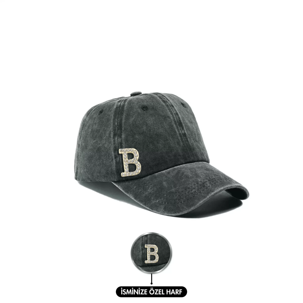 İsme Özel Yıkamalı Kep Şapka - AB01010 - Siyah