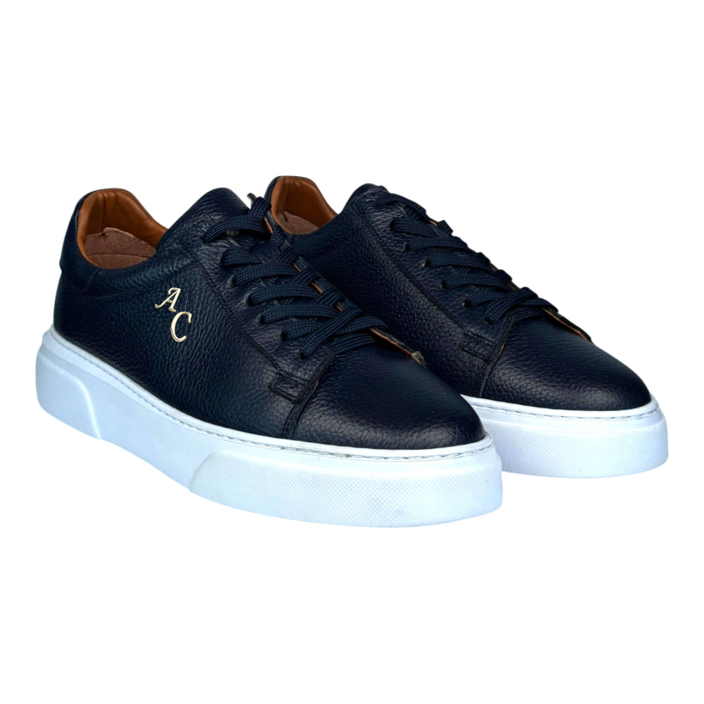 Kişiselleştirilebilir Kalın Ortopedik Tabanlı %100 Deri Sneaker Spor Ayakkabı - Lacivert