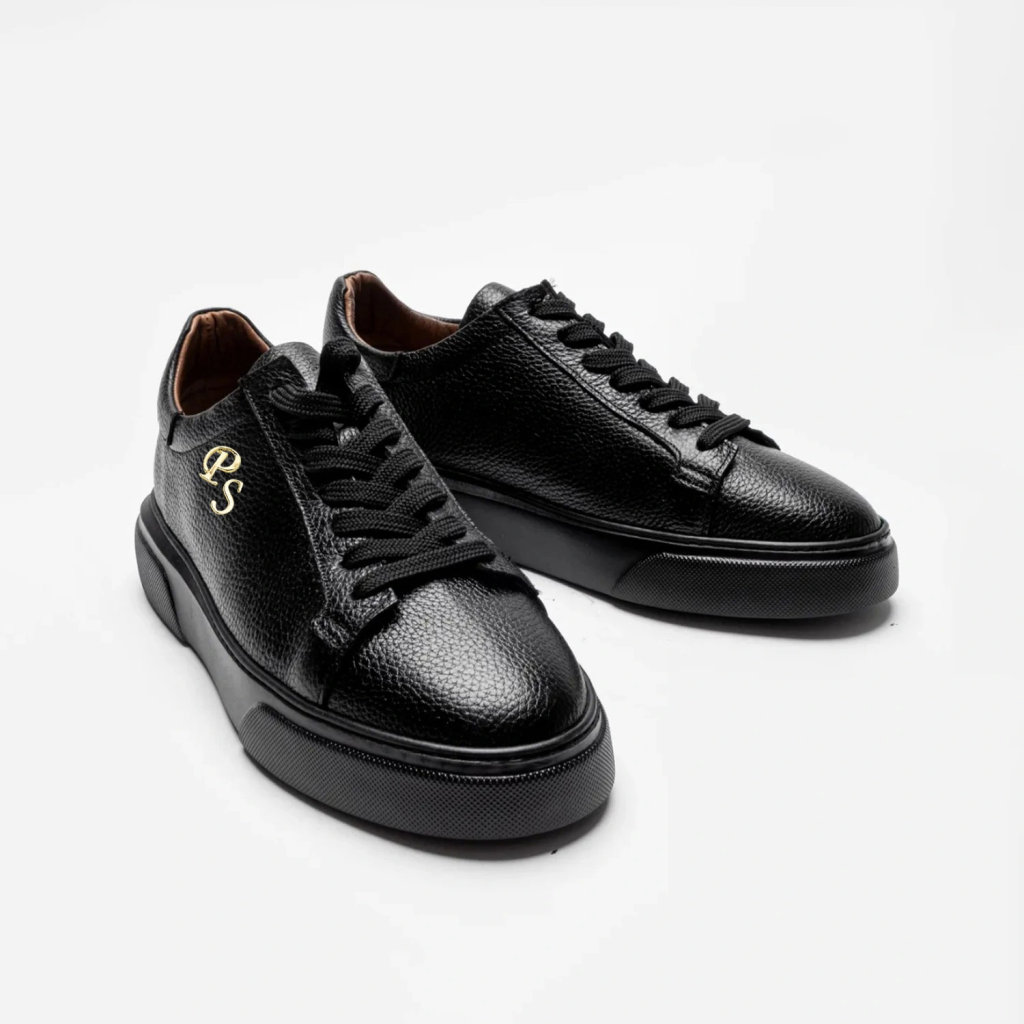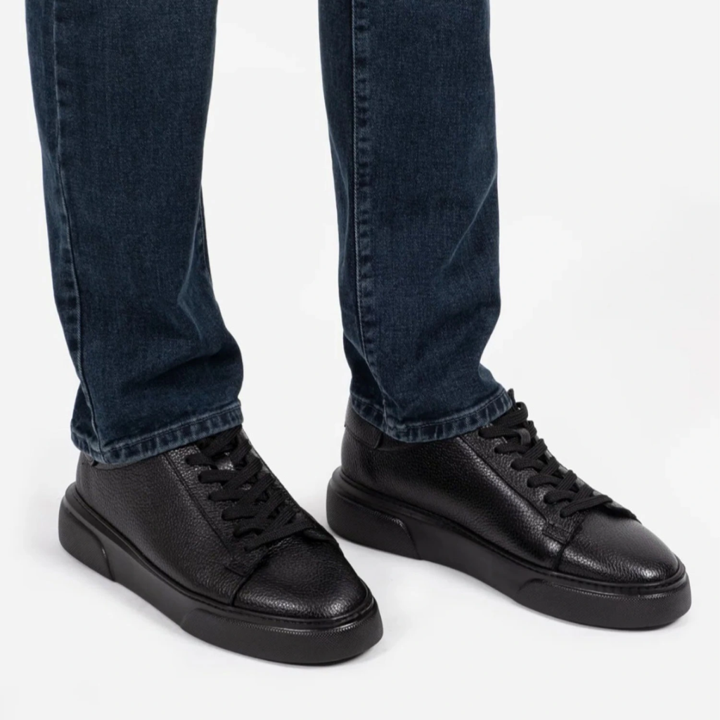 Kişiselleştirilebilir Kalın Ortopedik Tabanlı %100 Deri Sneaker Spor Ayakkabı - Siyah