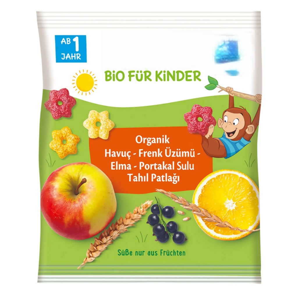 Organik Havuç Frenk Üzümü Elma Portakal Sulu Tahıl Patlağı 30 Gr